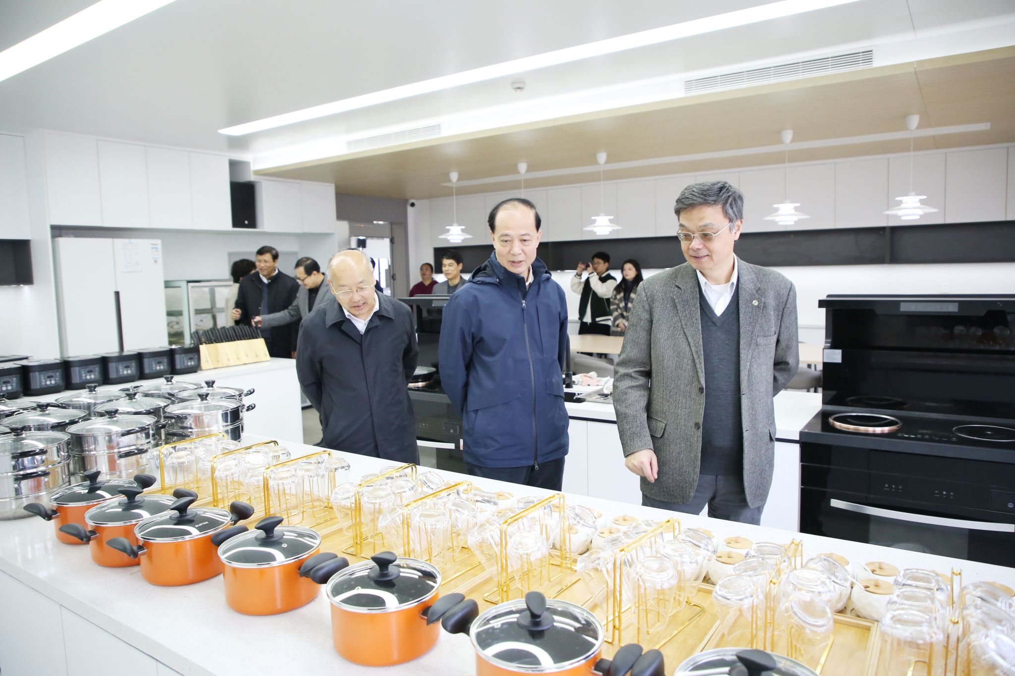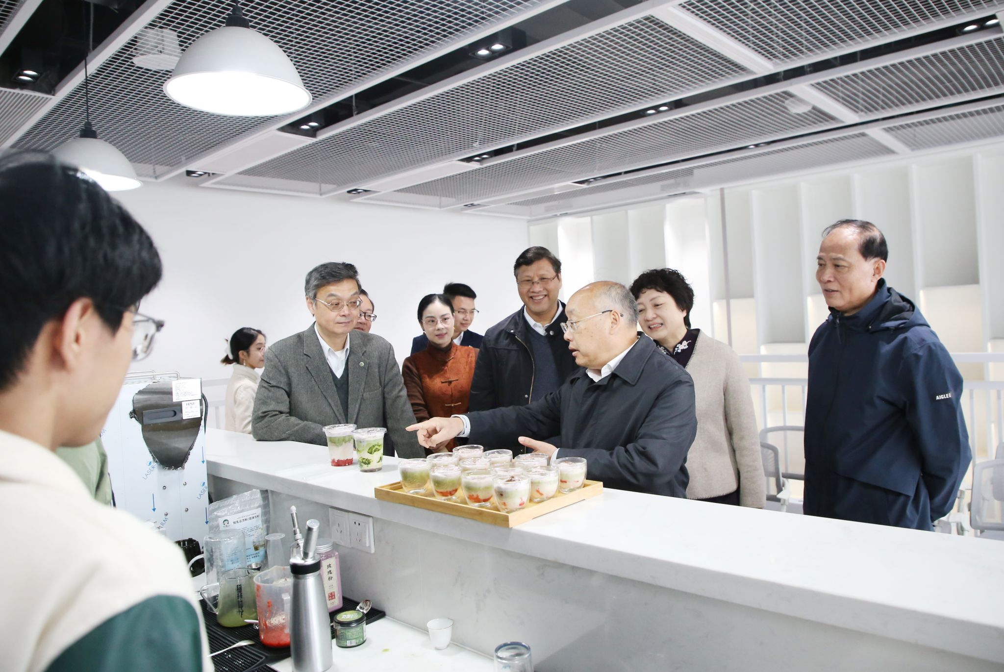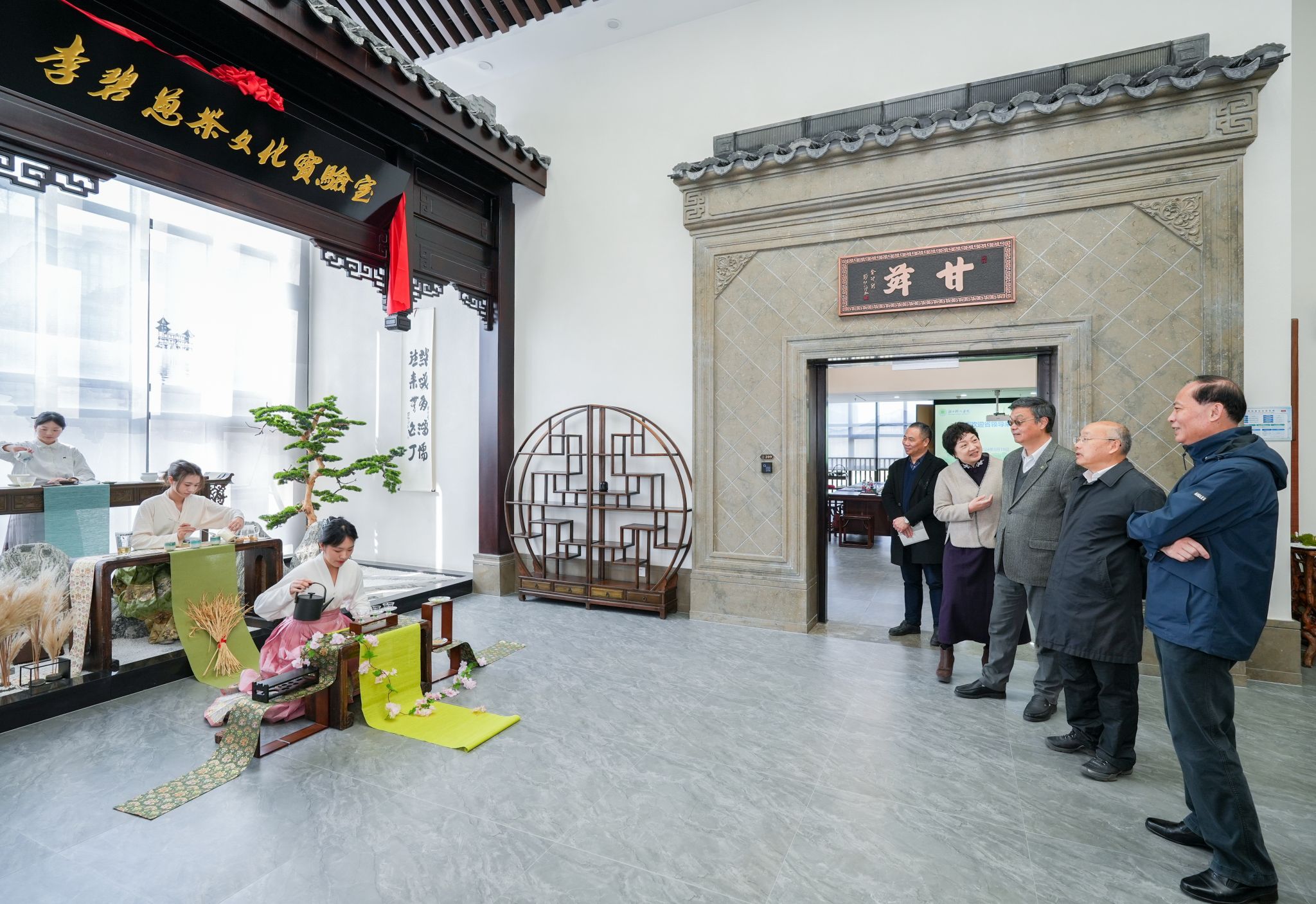 会前,在李鲁校长的陪同下,姒健敏主席一行前往经济与民生福祉学院家政实验室和李碧葱茶文化实验室、城建学院参观调研,有关负责同志汇报了省家政文化科普基地、省茶文化科普基地等建设情况。