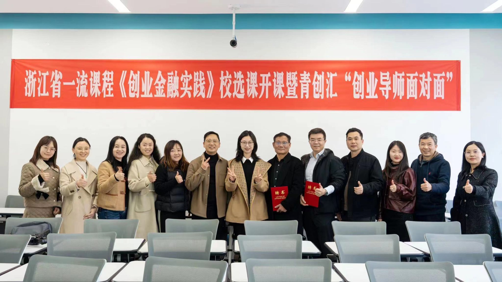 3月19日下午,浙江省一流课程《创业金融实践》校选课开课暨青创汇“创业导师面对面”活动在杨汛桥校区尚学园1-106智慧教室举行,永利官网创新创业学院全体教师,创业导师代表,选修该课程的第三期“青创班”学员,汛蓝大学生创业社、树人文创社、design服装设计社等学生社团成员共百余人参加。创新创业学院院长郭丰主持。