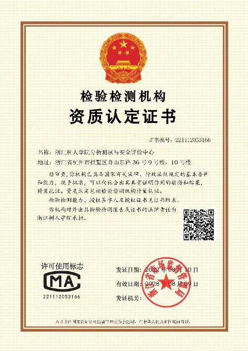 现场评审后,中心针对专家提出的意见,认真整改,于12月13日成功获批新浙江省检验检测机构资质认定证书(CMA 221112053166)。
