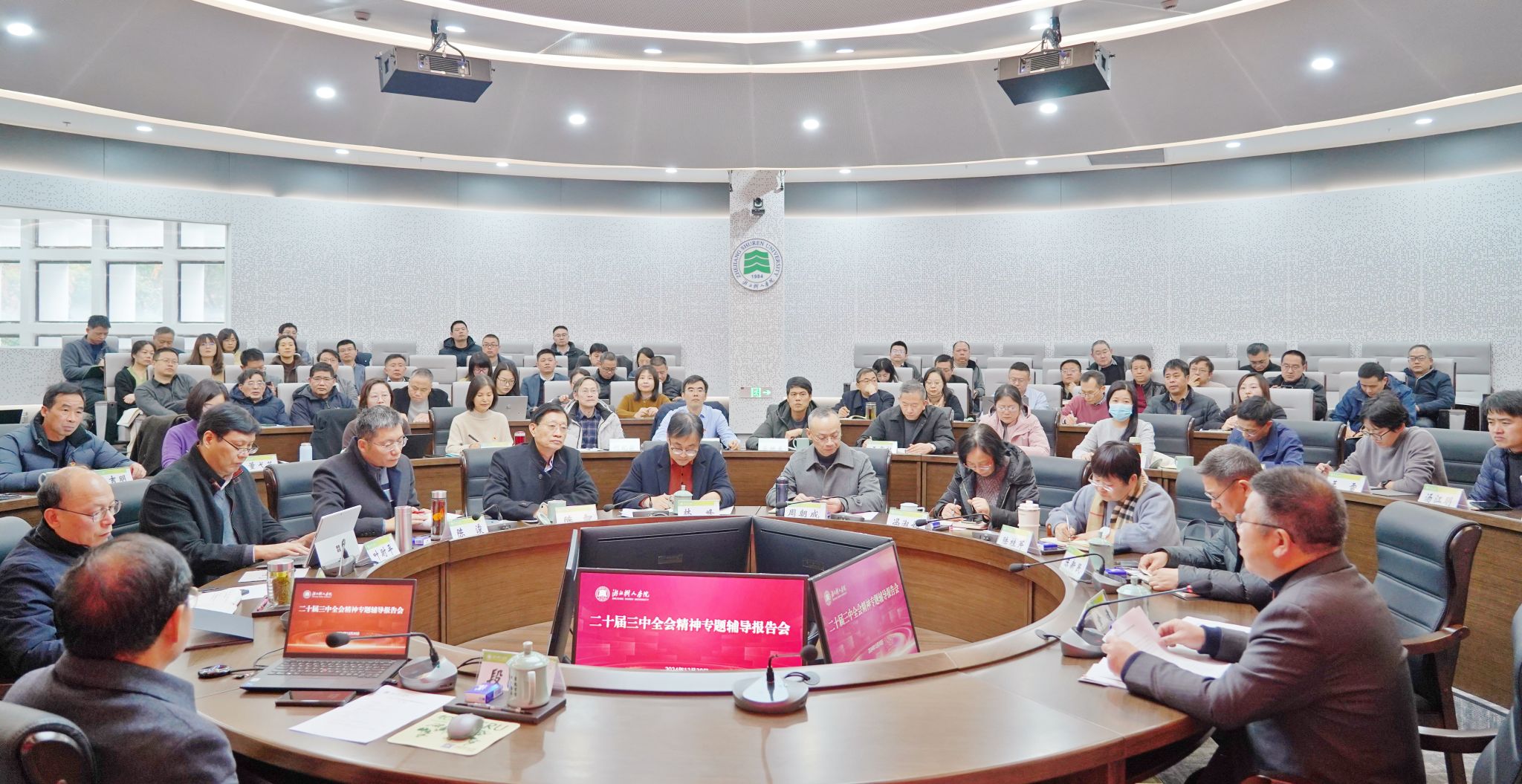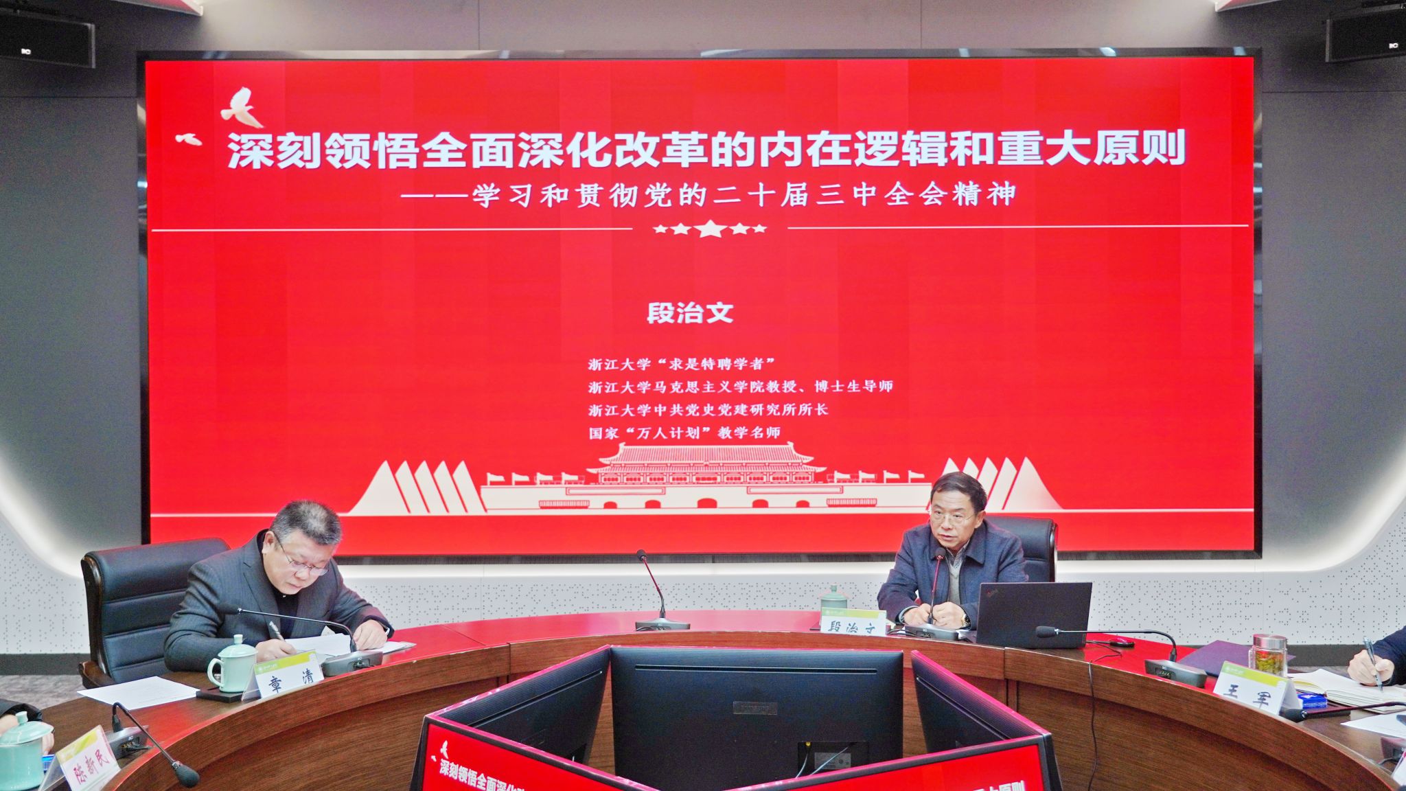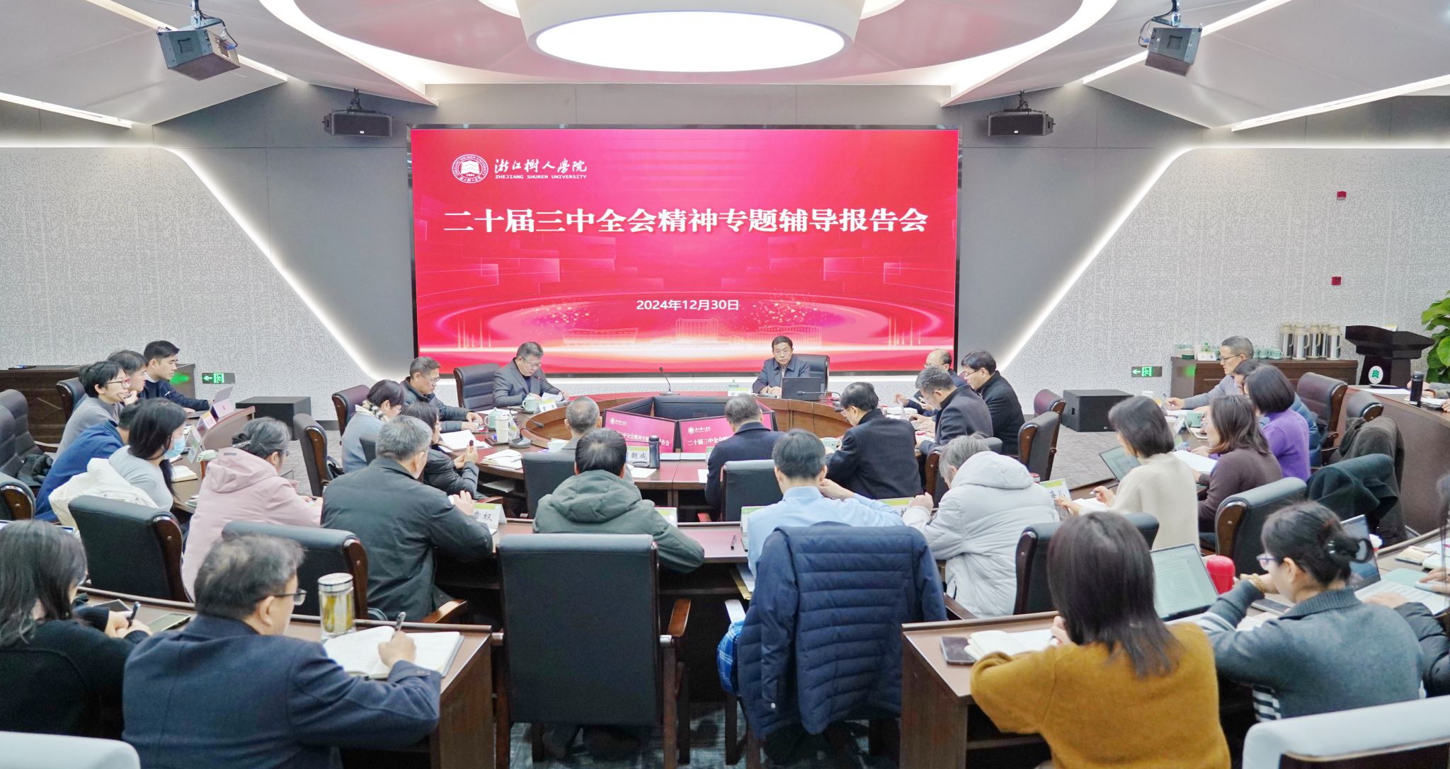 为深入学习贯彻党的二十届三中全会精神,推动特色名校、高水平应用型综合性大学建设,12月30日,浙江大学求是特聘教授、马克思主义学院博士生导师、浙江大学中共党史党建研究所所长段治文教授应邀来永利官网拱宸桥校区作党的二十届三中全会精神专题辅导报告。校领导章清、王军、陈新民、叶时平、陆桂芹、陈浚、冯淑娟、陈智以及全体中层干部出席。会议由校党委书记章清主持。