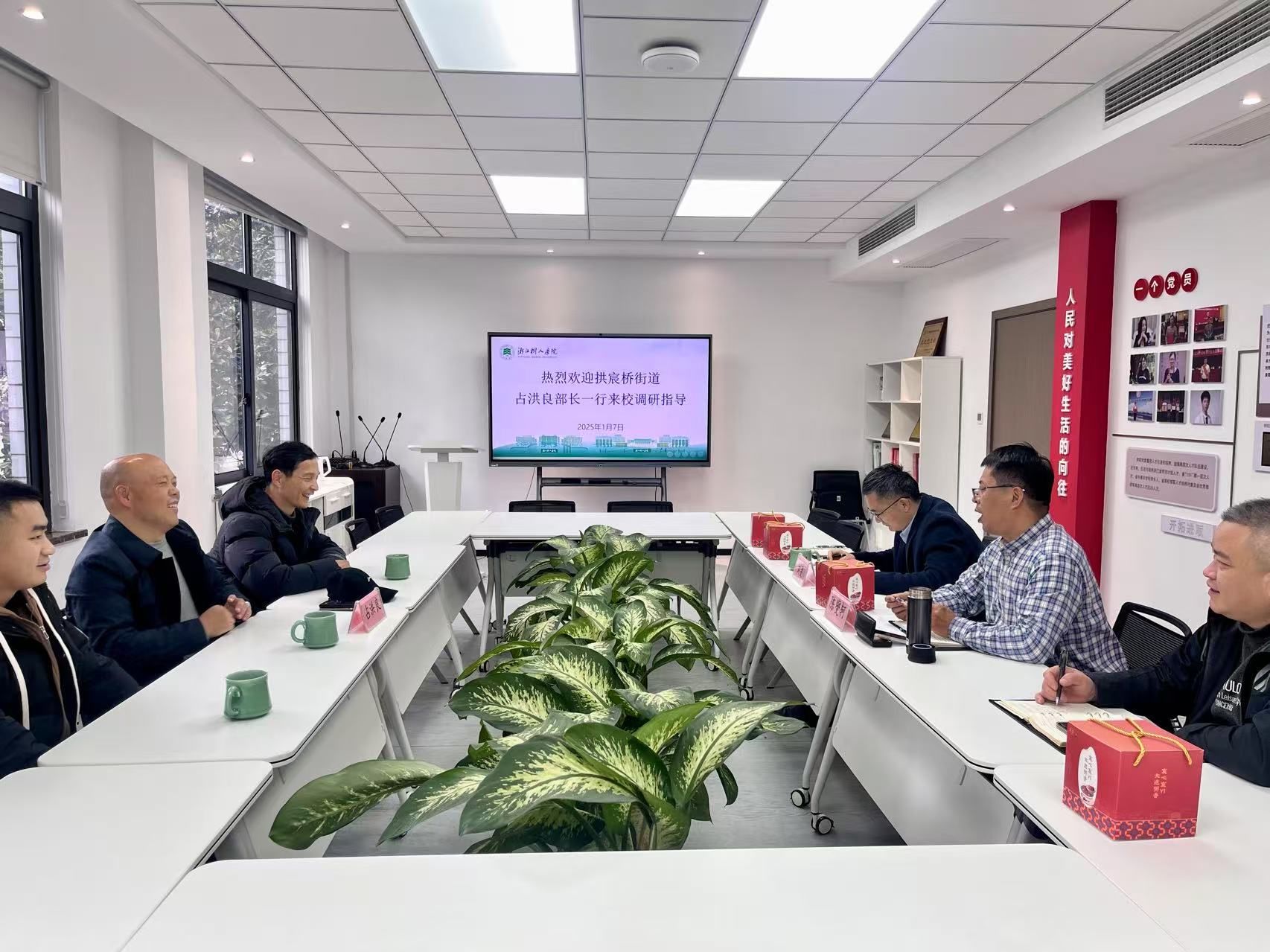 1月7日下午,拱宸桥街道人武部占洪良部长一行来校调研交流,校人武部部长陈燮轲、副部长刘斐热情接待了一行。