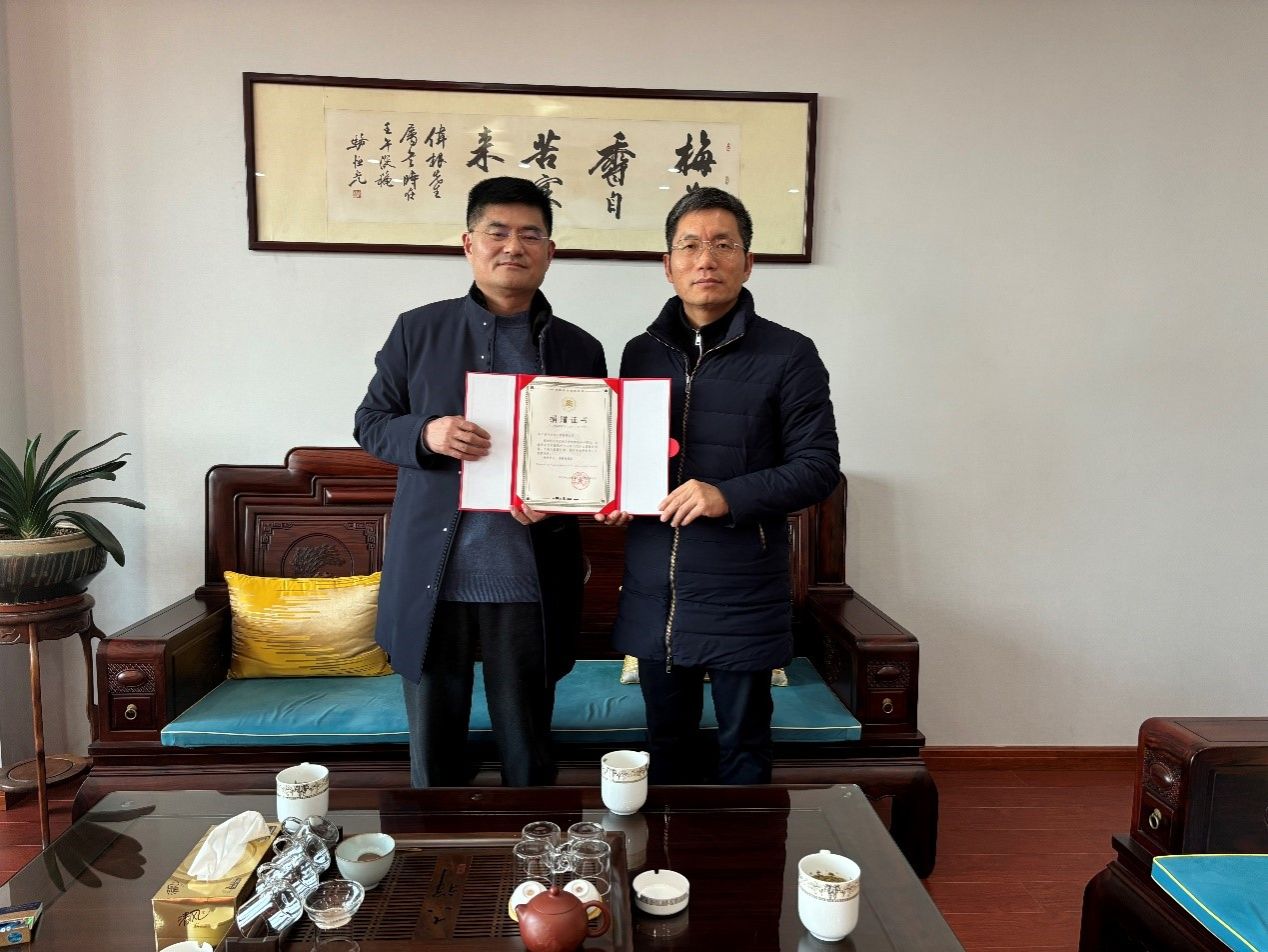 1月9日下午,为向浙江宏伟建筑工程有限公司表达对其出资建设杨汛桥校区南大门外立面提升项目的诚挚谢意,陈浚副校长率领校园建设处相关人员亲赴该公司,为其颁发捐赠证书,宏伟公司董事长金伟根热情接待。
