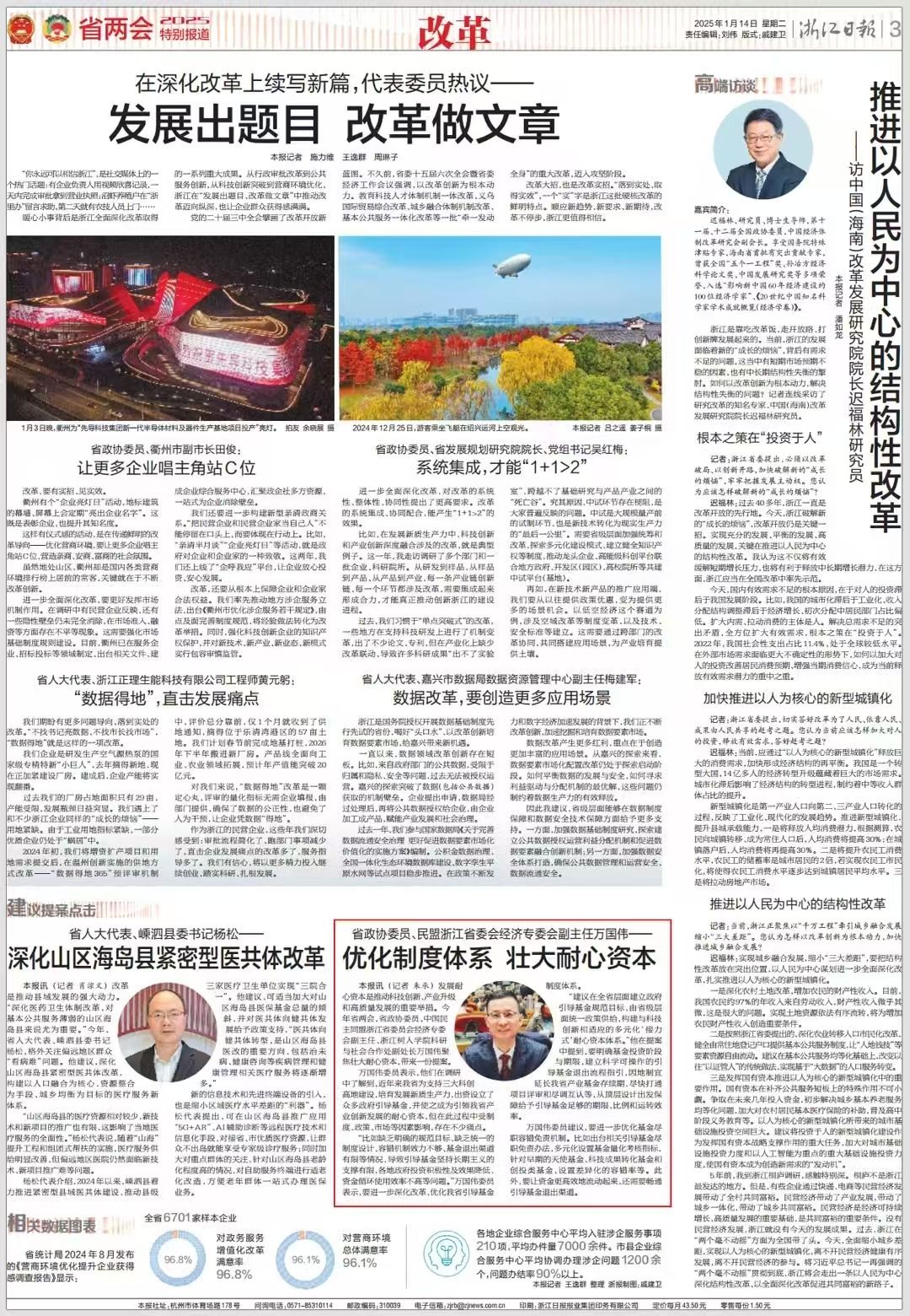 万国伟委员结合自身专业特长、所关注的领域,履职尽责,积极建言献策,提交了关于壮大耐心资本等5个提案,并获浙江日报、潮新闻、联谊报、浙江法制报等媒体平台关注和报道。