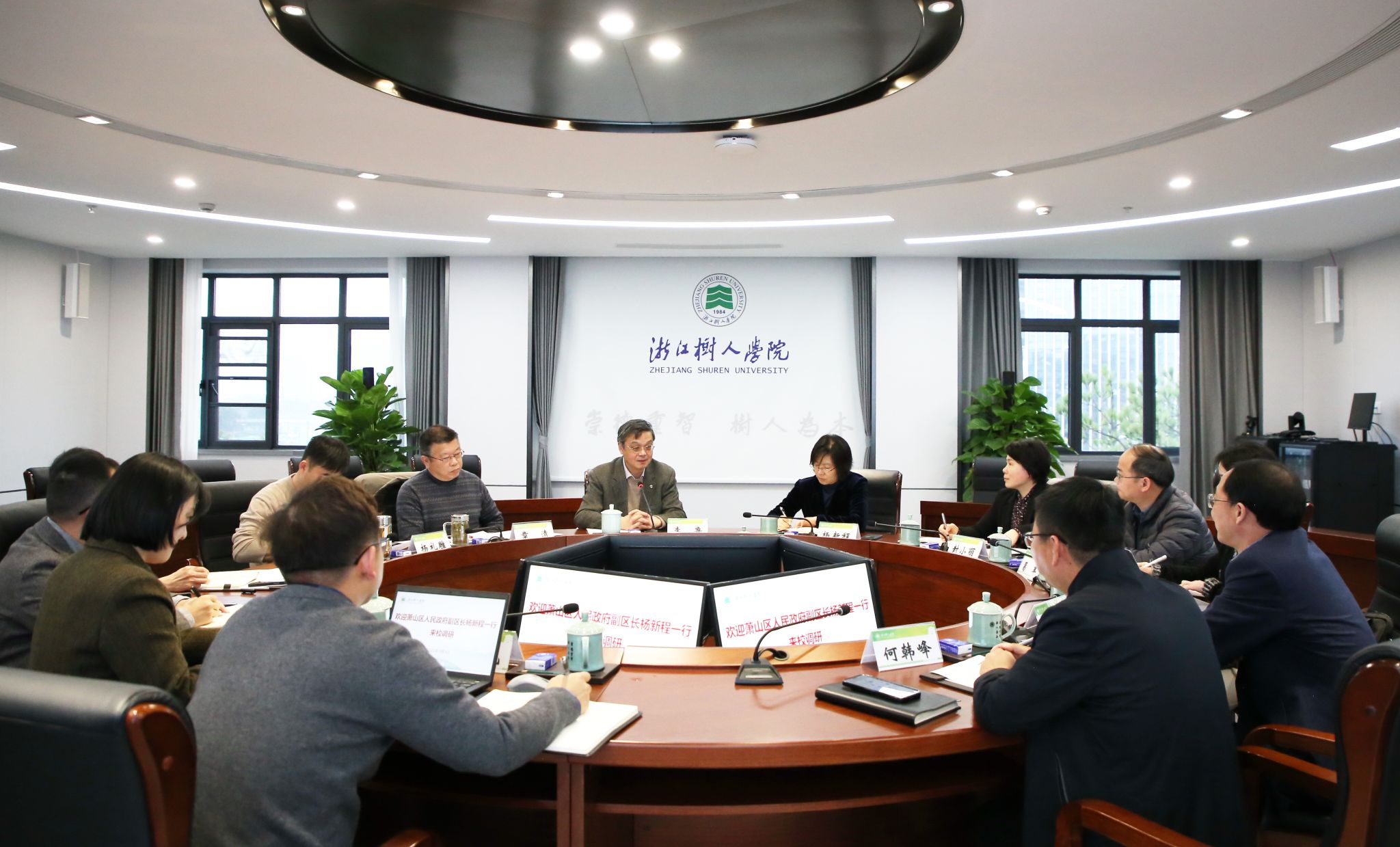 3月3日,萧山区人民政府副区长杨新程一行来永利官网调研。校长李鲁、校党委书记章清出席座谈会。萧山区教育局副局长封小丽、萧山区教育局教育科科长葛军、萧山区政府办公室政务公开科科长孙冰洁、萧山二职党委书记曹鹤鸣、萧山二职校长何韩峰陪同调研,永利官网党委(校长)办公室、党委宣传部、教务处、党委学生工作部、城建学院相关职能部门负责人和教师参加了座谈会。