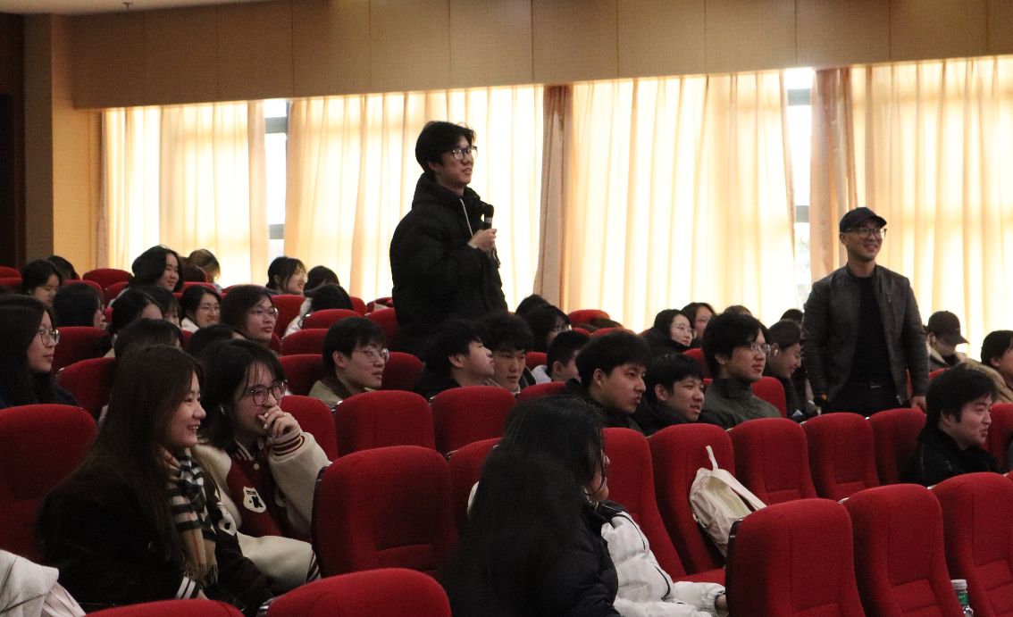在提问环节,同学们纷纷提问,有表示如果想参与团队项目制作或者去公司参与实践,公司的要求是哪些?有对于成功的产品线下展示能否覆盖展示成本,展示的意义与目的?有对于目前人工智能的飞速发展,对从事创意行业所带来的挑战与困惑等。夏殷周都一一给予耐心的解答,AI可以帮助大家有更多的想法,但是作为自己本身需要有创造力去对于软件驾驭与使用,不能把自己的创意丢了。对于同学们想参与真实项目制作或者有创业想法的同学,夏殷周是非常鼓励和欢迎的,也对同学们持开放的态度,只要同学们喜欢,不一定要求有技能,技能是可以培养的,同时希望同学们能对电影、游戏小说、文学类作品有相关研究与喜好。对于提问题的同学们,夏殷周精心准备了公司自己研发的周边产品作为小奖励,同学们热情高涨。