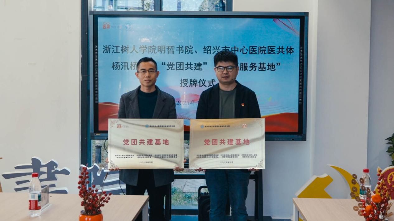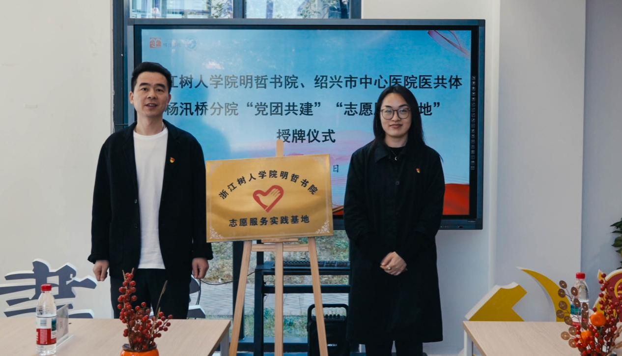 为进一步创新基层党建工作载体,构建校地优势互补、资源共享、共同发展的协同育人新格局。3月21日,明哲书院与绍兴市中心医院医共体杨汛桥分院举行"党团共建单位""志愿服务实践基地"双授牌仪式。明哲书院常务副院长夏立芬、直属党支部书记兼副院长陈安龙,杨汛桥分院院长兼书记许国钧、副院长王赟、李国华、办公室主任周颖以及明哲书院党团办公室辅导员和学生志愿者代表参加。