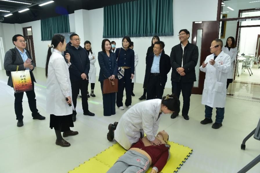 调研团一行还实地考察了山东协和学院的护理学国家级实验教学示范中心、医护国家级虚拟仿真实验教学中心。该实验中心由99个实验、实训室组成,既承担课内实验(实训)教学、课外实验室开放、职业技能培训等任务,同时也支撑大学生创新创业、师生教改科研等项目的开展,也是医护师生开展教学改革和科学研究的平台,是乡村医生培训、养老护理员培训的实践基地。该中心的运行模式、管理制度等方面,提供了有益的启发。