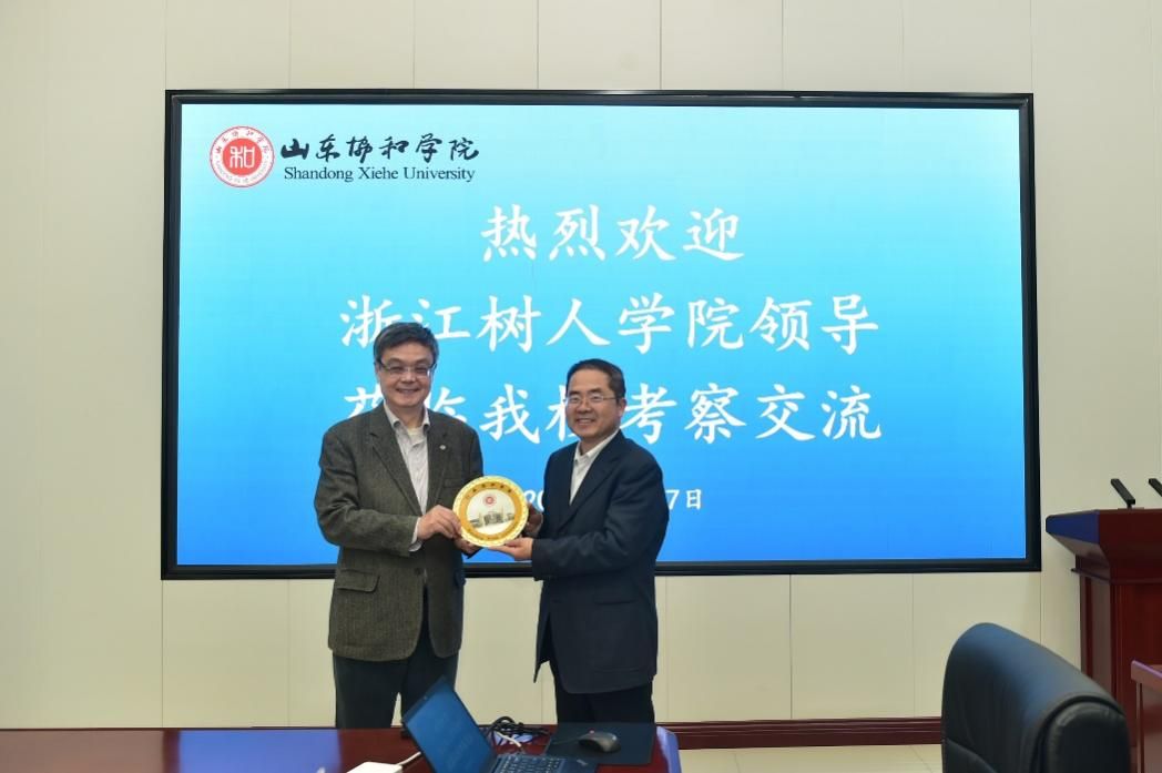 座谈交流会上,李校长先代表学校感谢周传安校长去年11月8日赴杭州参加了学校建校40周年庆祝大会暨高质量发展论坛,充分体现山东协和学院对树人学院的关心和支持。李校长介绍了学校近年来以学科建设为引领推动学校提质升格的实践、取得的成效,并表示,两所学校在办学中有诸多的共同点和互补点,双方都致力于培养应用型人才,山东协和学院在教学成果奖申报、创新创业教育等方面的经验十分值得树人学习,树人在学科建设、科研研究等方面的探索和做法对协和学院也有借鉴意义。双方一致同意,进一步加强合作与交流,共同为民办高校高质量发展贡献力量。