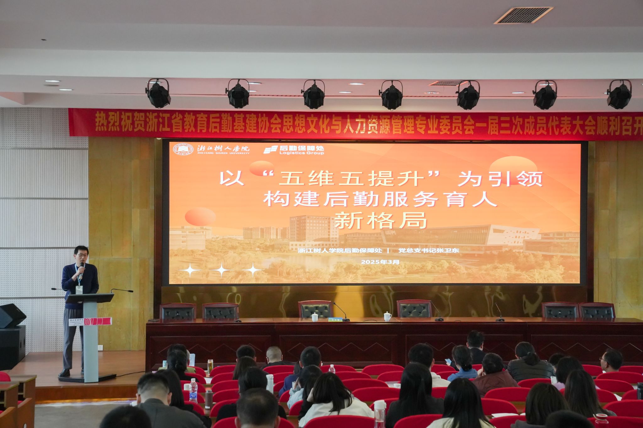 近日,由浙江省教育后勤基建协会思想文化与人力资源管理专业委员会一届三次成员代表大会,面向全省高校开展的首届浙江省高校后勤育人优秀案例征集活动评选结果正式揭晓。由304永利集团官网后勤保障处申报的《以“五维五提升”为引领,构建后勤服务育人新格局》入选优秀案例,后勤保障处党总支书记张卫东在大会现场做主题分享。