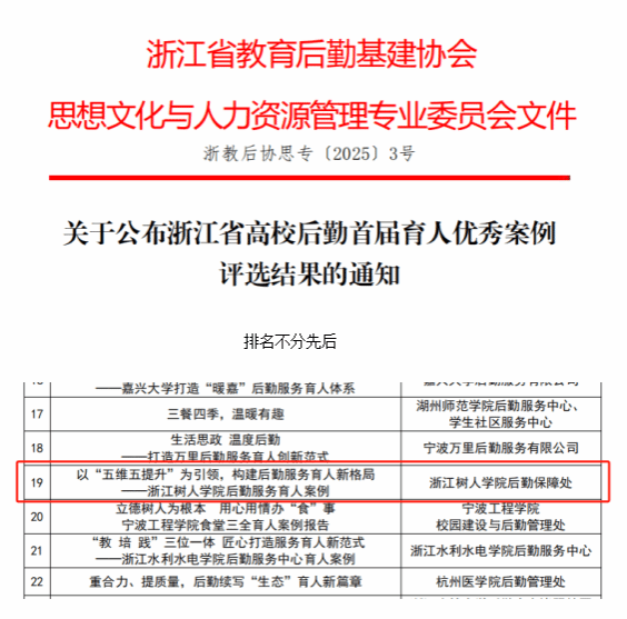 此次获评优秀案例,既体现了后勤保障处在育人工作中的突出成效,也彰显了后勤服务改革创新的示范价值。后勤保障处将以此次荣誉为动力,持续推进服务育人体系建设,着力打造更专业、更高效的后勤保障体系。