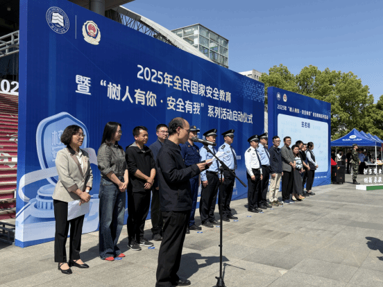2025年4月15日是第十个全民国家安全教育日。为深入贯彻落实总体国家安全观,增强广大师生维护国家安全的意识和能力,4月15日下午,永利官网在杭州拱宸桥校区举行2025年全民国家安全教育暨“树人有你﹒安全有我”系列活动启动仪式。校党委副书记王军、杭州市拱墅区公安分局副局长刘海青、区反恐大队、区平安办、消防站、拱墅区上塘派出所、柯桥区杨汛桥派出所、柯桥区教育系统及永利官网300余名师生代表参加活动。启动仪式由校长助理冯淑娟主持。