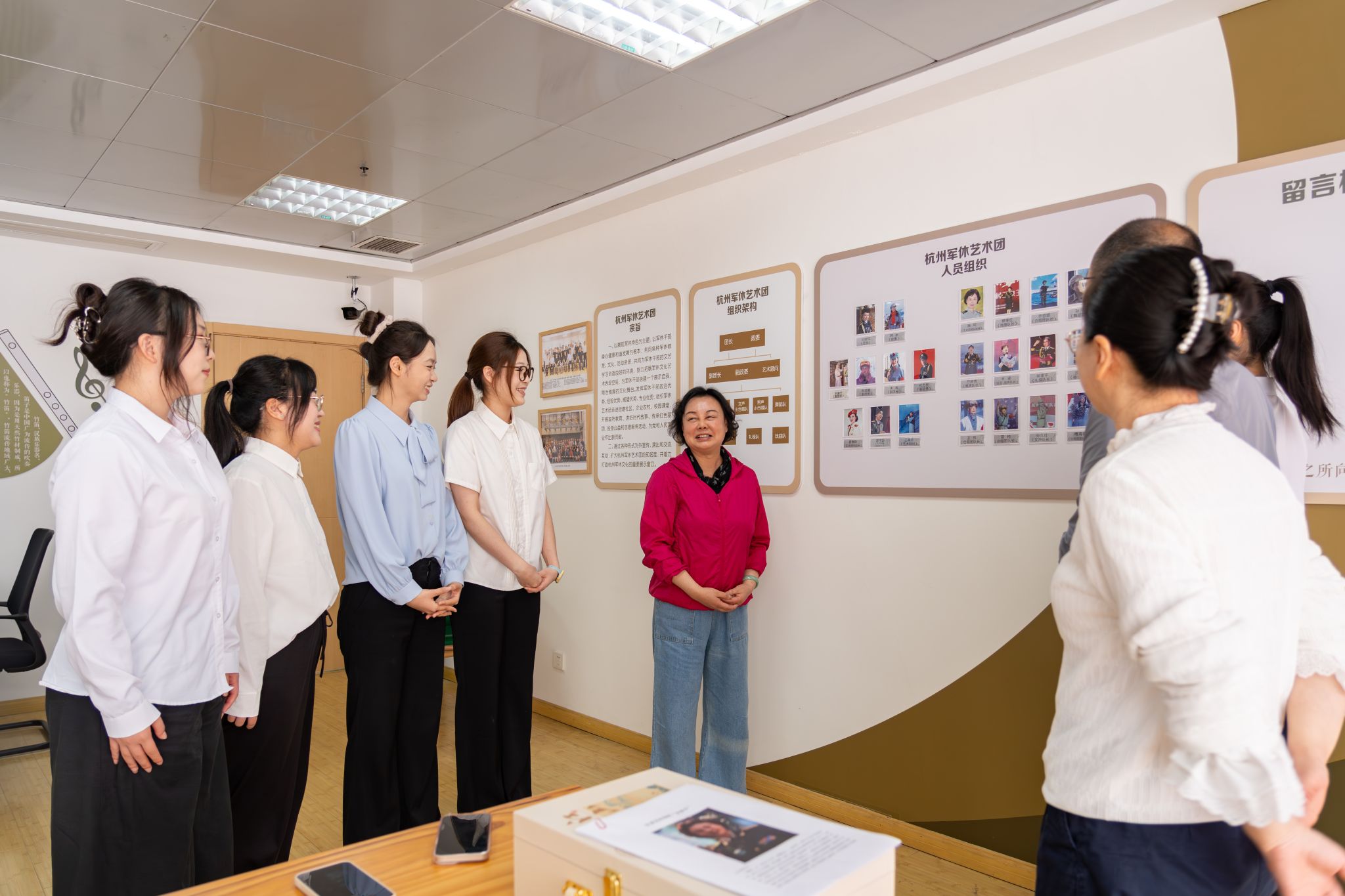 2025年4月11日,304永利集团官网马克思主义学院袁忠海、张玲老师带领崇德书院部分学生来到杭州军休干部活动管理中心,与中心艺术团团长刘导:刘继红大校相约,分享她在创作红色作品,以艺术方式弘扬红色精神的心路历程,并就如何传承红色文化问题与青年学子对谈、交流。