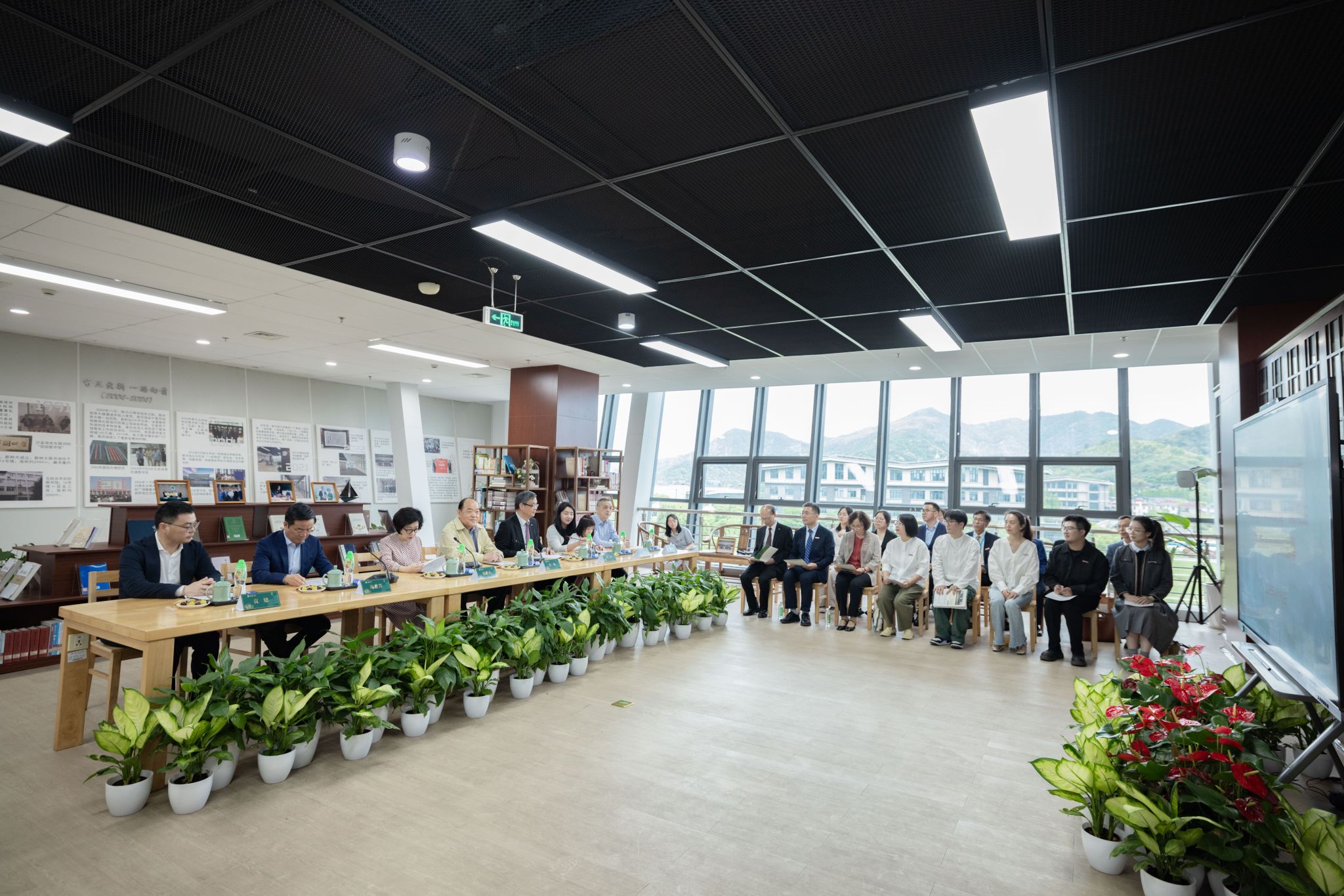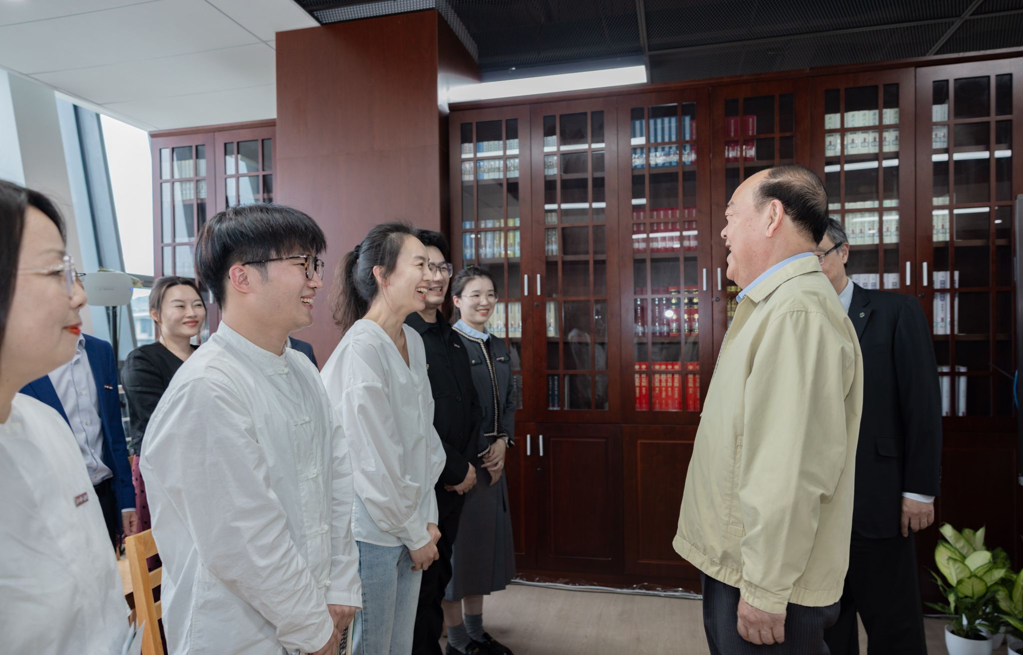 4月16日,澳门特别行政区第五任行政长官贺一诚一行到访永利官网,在参观完杨汛桥校区贺田图书馆后与树人师生亲切交流。