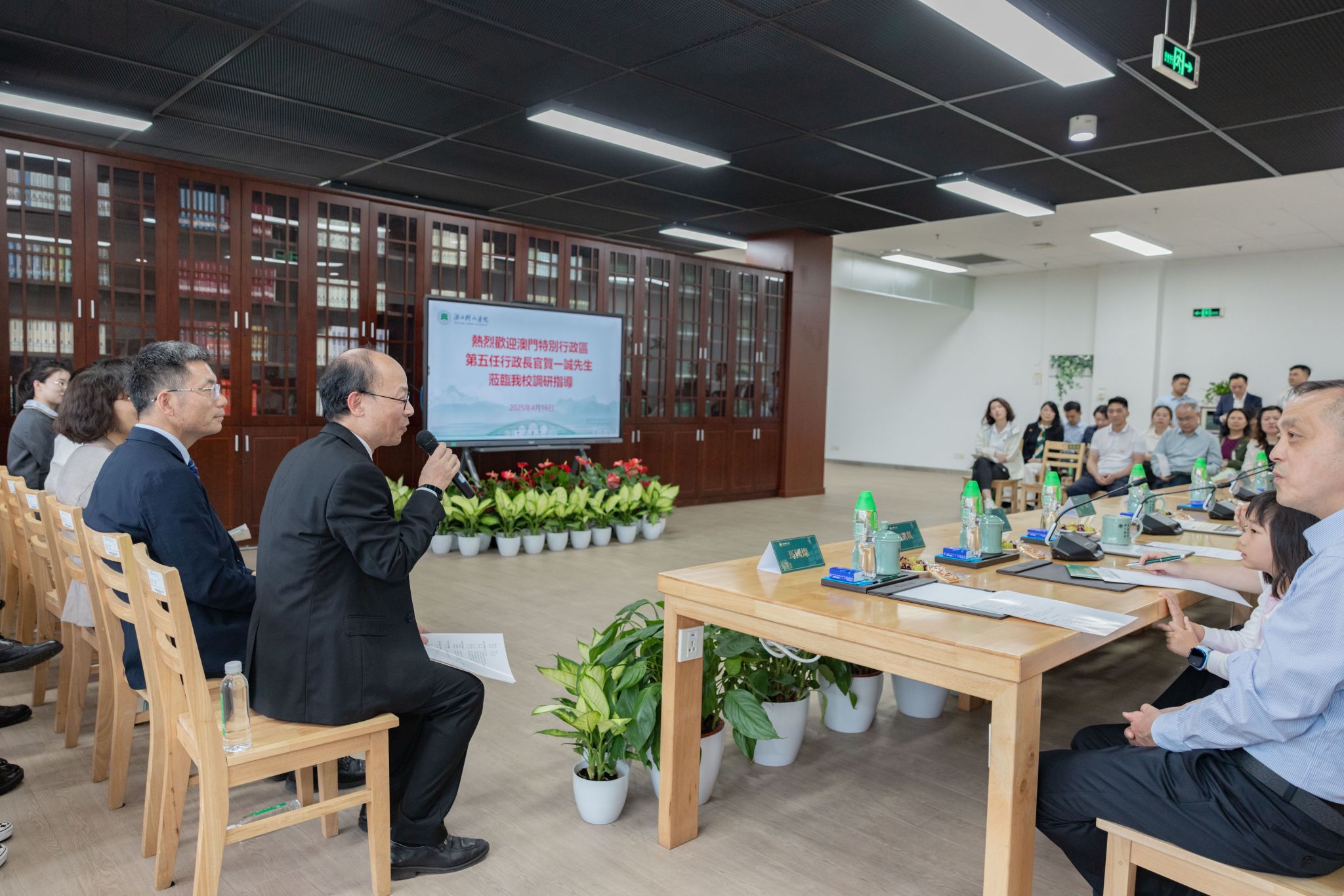 李鲁代表全校师生对贺一诚先生第五次到访永利官网表示热烈欢迎。他简要介绍了学校的办学历史、与澳门的交流合作及发展情况,深情回顾了港澳乡贤对学校建设发展的鼎力支持,深切感怀贺氏家族与永利官网的绵长情谊,充分体现了对内地高等教育事业发展的高度重视和对永利官网的亲切关心,并汇报了学校在2024年增列为硕士点授予权(加强建设)单位、首次登顶2025年《软科中国大学排名榜》民办高校榜首等喜讯。李鲁期望通过本次到访,进一步加强澳门与学校在人才培养、学术科研等方面的交流合作,为推动浙江“勇当先行者、谱写新篇章”作出新的更大贡献。