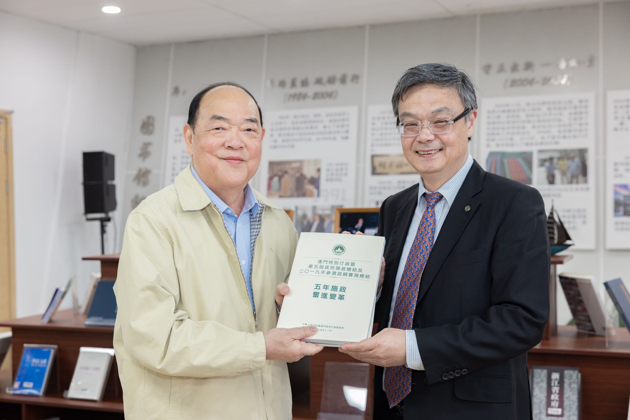 贺一诚先生向李鲁校长赠送《五年施政奋进变革》