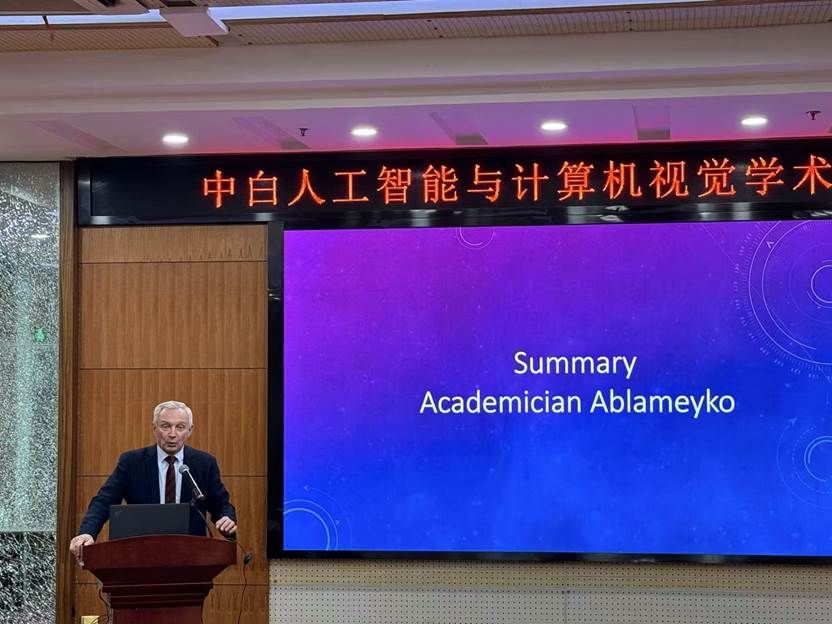 最后,Sergey Ablameyko院士对学术研讨会做了总结。他高度肯定了此次中白人工智能与计算机视觉学术研讨会。他着重强调了中白科技合作的重要价值,特别是在人工智能和计算机视觉技术领域取得了突破性进展。院士特别提到青年科研群体在中白科技合作中的关键作用,呼吁青年老师不仅要聚焦于理论层面的研究,更要注重实践应用。他还特别赞赏了304永利集团官网的多元化交流形式,除传统学术报告外,还有走访企业等活动,这将有效促进产学研深度融合。基于现有合作框架,他期望能够进一步深化并拓宽合作领域,以期共创更多辉煌成就。
