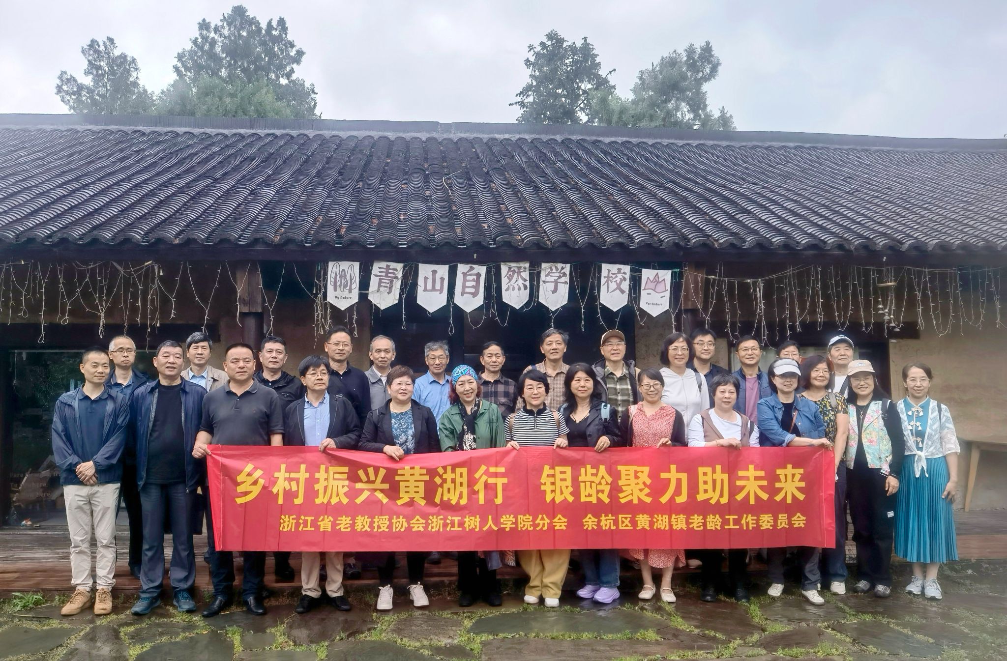 在青山村,老教授们参观了龙坞水库、青山生态绿地、融设图书馆、艺启共富坊、青山自然学校、百岁幸福家、望川谷和黄湖扶摇里文创中心等机构,领略了青山村的自然生态和艺创之美,并对村民的全方位生活服务支持体系进行了考察和调研。