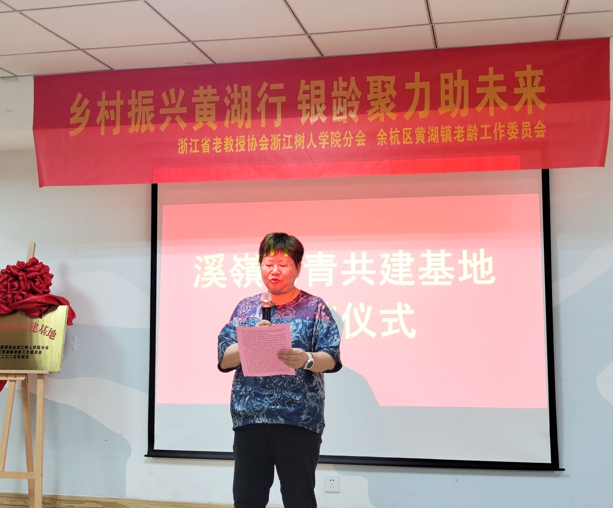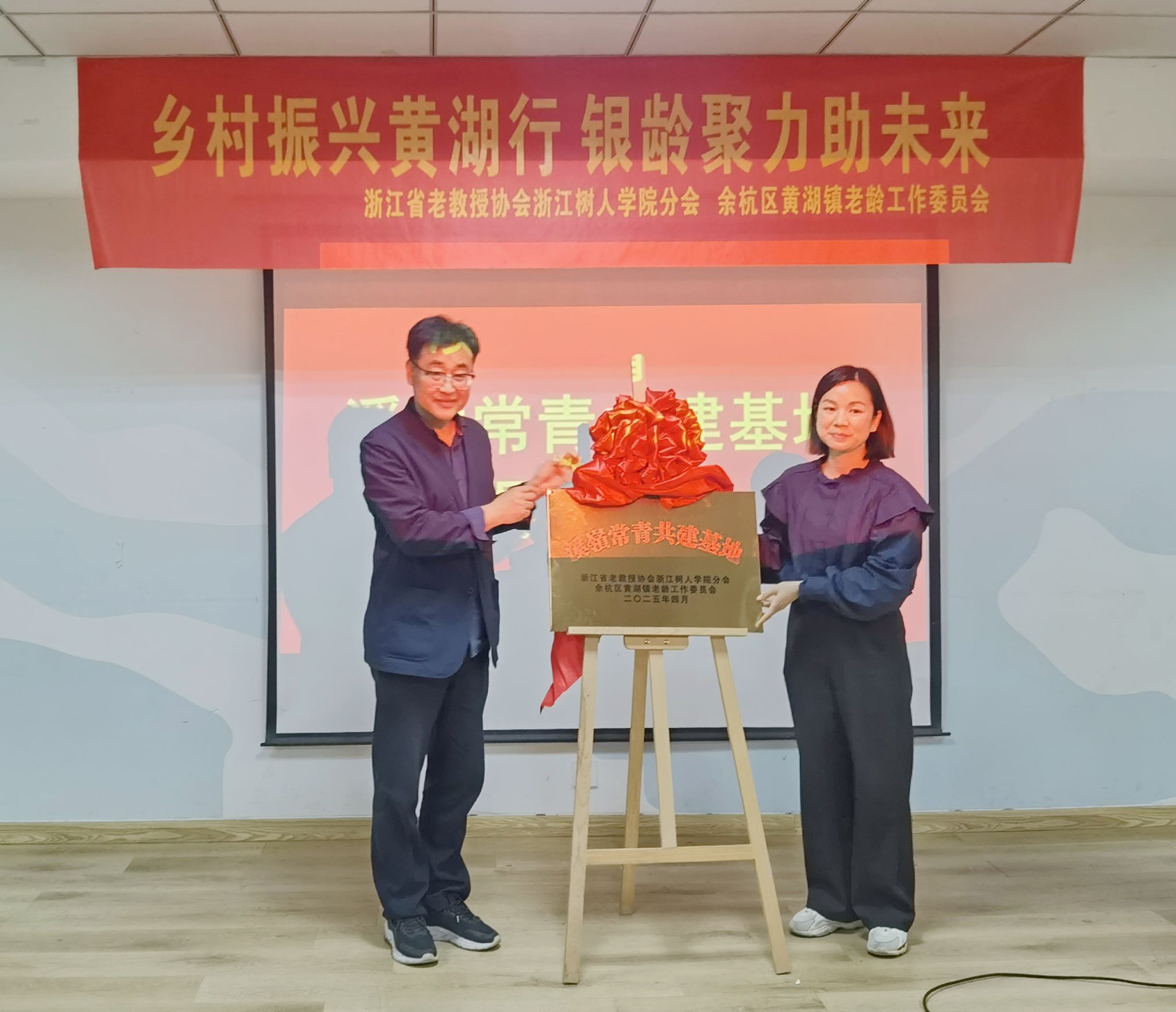 下午,浙江省老教授协会304永利集团官网分会黄湖基地揭牌仪式在黄湖镇文体中心2楼会议室举行。