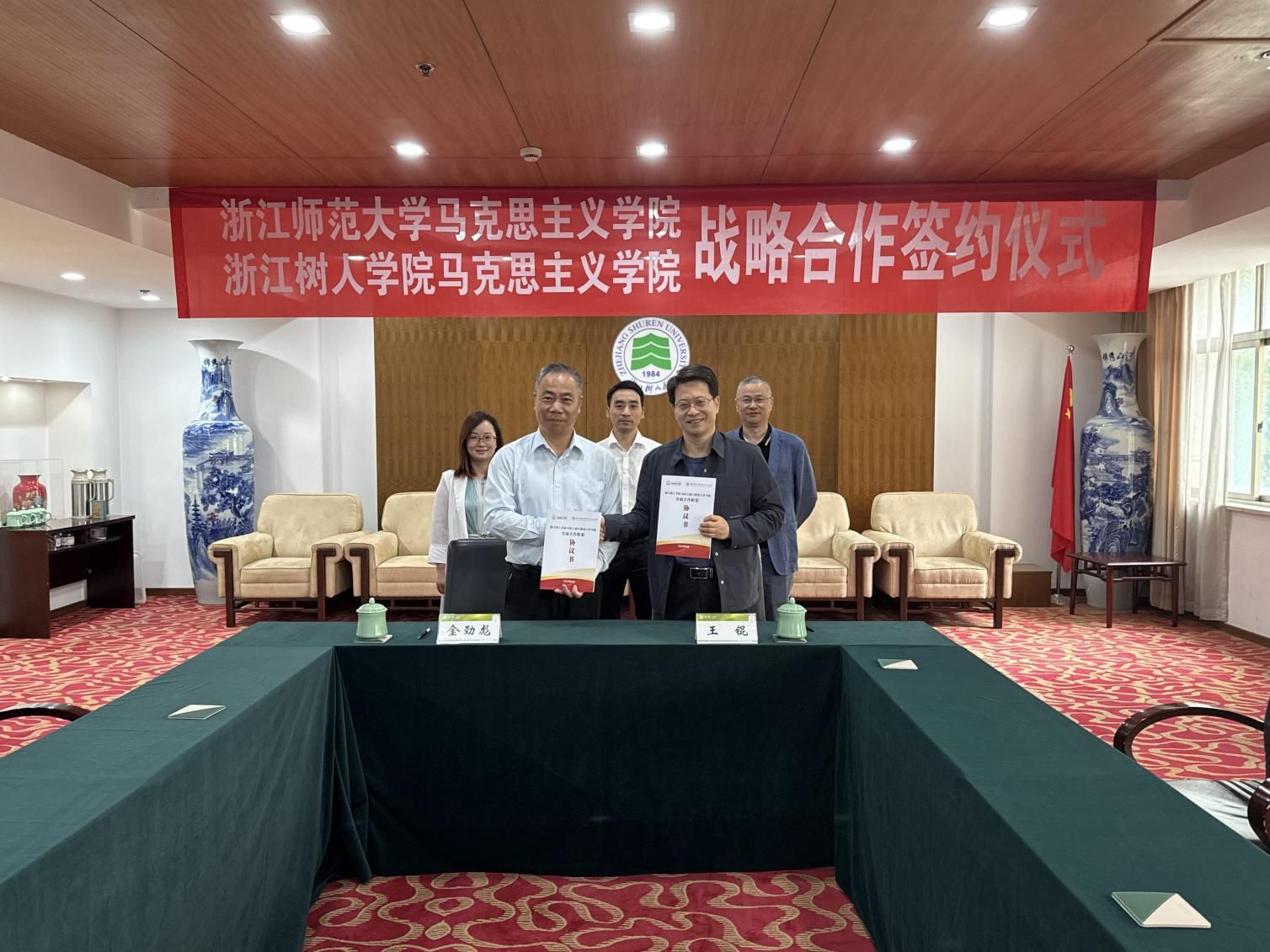 4月24日上午,永利官网马克思主义学院与浙江师范大学马克思主义学院战略合作关系签约仪式在杭州校区综合楼312室举行。浙江师范大学马院院长王锟、永利官网马院院长金劲彪分别代表双方签署协议,此举标志着两校在马克思主义理论学科建设领域开启深度协作新篇章,更为永利官网马克思主义理论学科申报硕士学位点注入强劲动能。