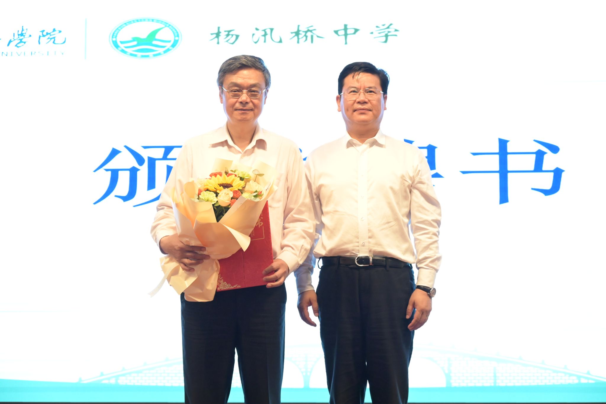 钱春风为李鲁校长颁发“柯桥区杨汛桥街道教育系统思政教育特聘导师”聘书。
