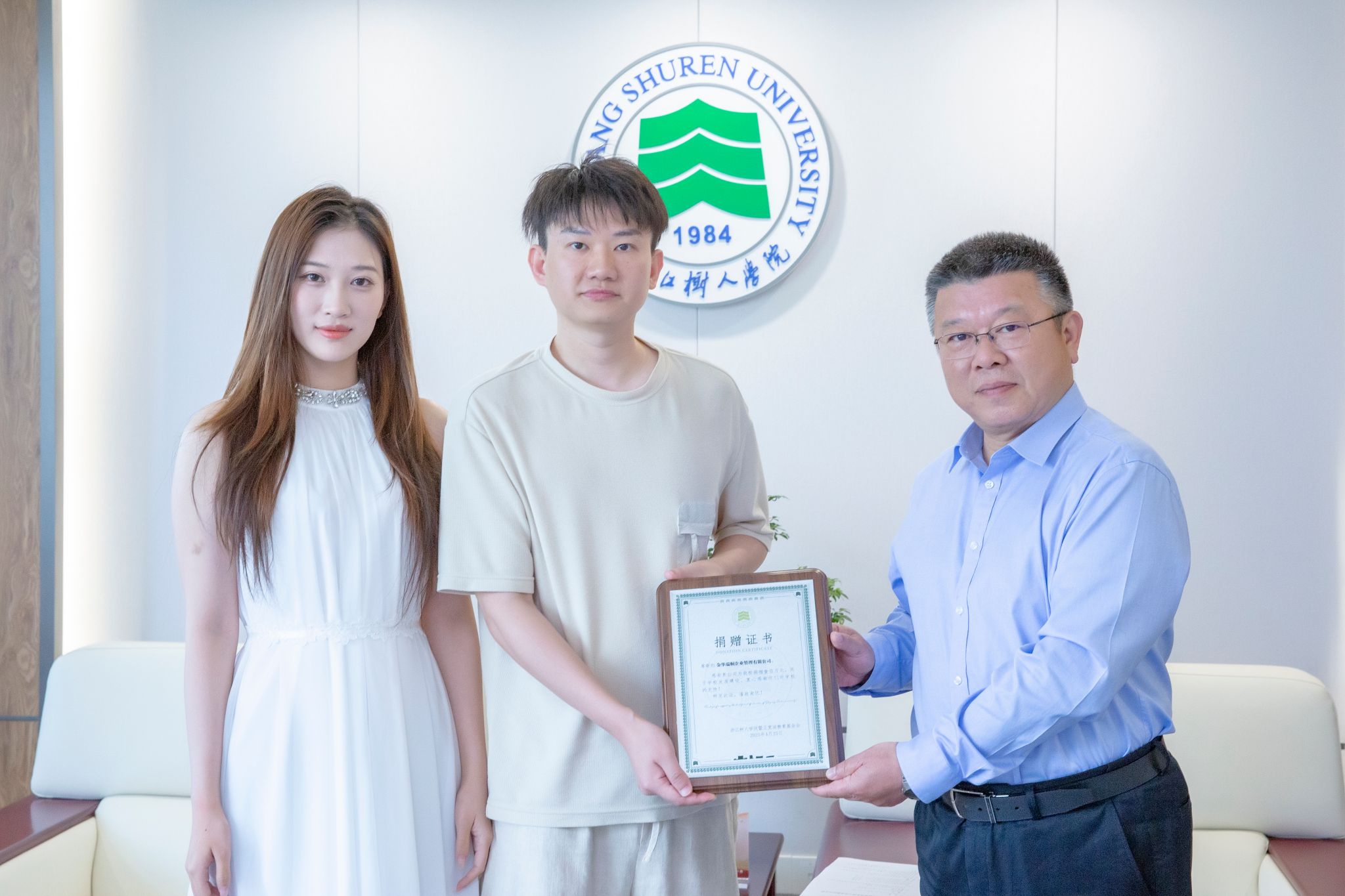 4月30日上午,金华瑞桐企业管理有限公司捐赠仪式在杭州校区查济民509举行。校党委书记章清、金华瑞桐企业管理有限公司代表兼2021届工商管理专业校友刘美玲、2016届环境艺术设计专业校友吴金磊、校党办和学生处负责人等出席仪式,共同见证年轻校友与母校的“双向奔赴”。