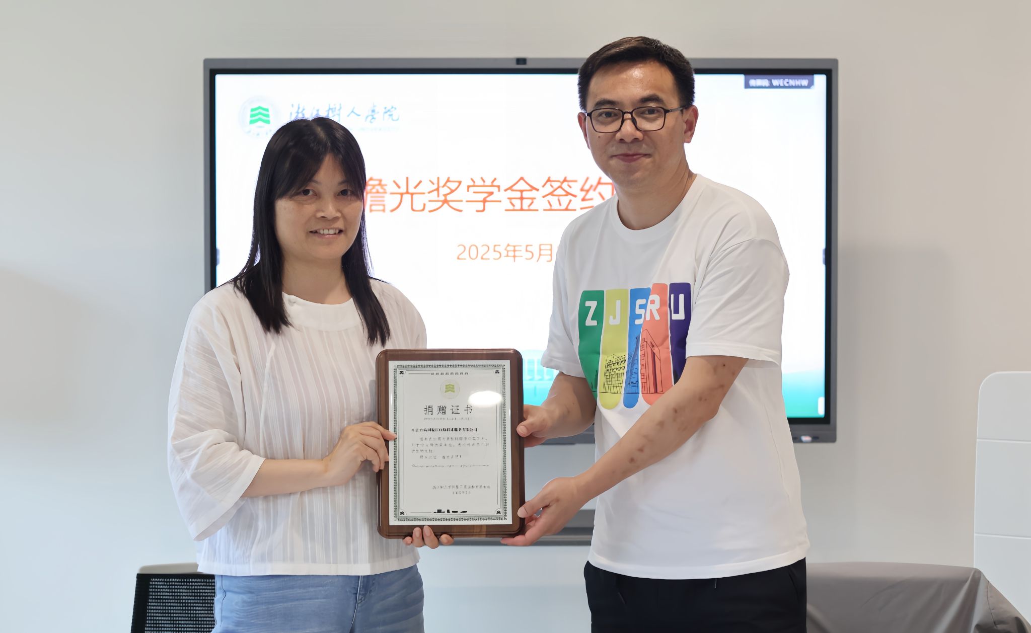 2025年5月8日,在永利官网拱宸桥校区举行校友奖学金捐赠仪式。永利官网2016届财务管理专业优秀校友王瞻光女士慷慨捐赠15万元,设立专项奖学金,用于激励品学兼优的永利官网学子奋发向上。党委学工部部长、学生发展与服务处处长严伟伟、副处长金文君、学生代表及王瞻光女士共同出席仪式,见证这一暖心时刻。