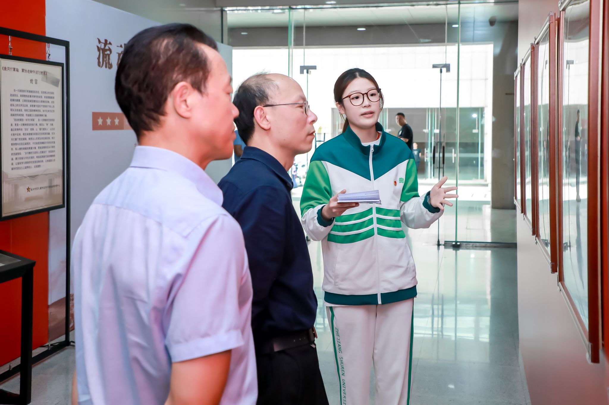 会前,在“小青树”宣讲员叶佳同学的带领下,学校党委副书记王军陪同浙江省退役军人事务厅、杭州市退役军人事务局、杭州市军休活动管理中心以及杭州市革命烈士纪念馆一行十余人参观了“红色‘迹’忆长廊”,感受红色货币的力量和魅力。
