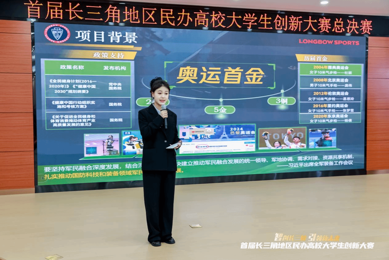 近日,首届长三角地区民办高校大学生创新大赛总决赛在上海工商职业技术学院举行。本次大赛以“智创长三角 引领新未来”为主题,由中共上海市民办教育综合委员会指导,上海市民办教育协会主办,江苏省、浙江省、安徽省民办教育协会协办,上海工商职业技术学院承办,来自三省一市共计322个项目报名参赛。经过初赛、半决赛的激烈角逐,最终包含永利官网《长弓竞技——中国射击运动的引航者》等在内的10所高校的12个项目进入总决赛。