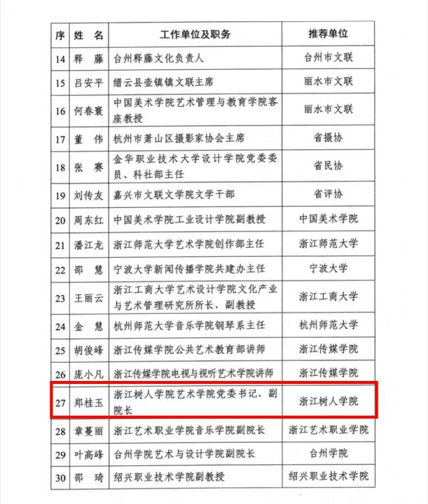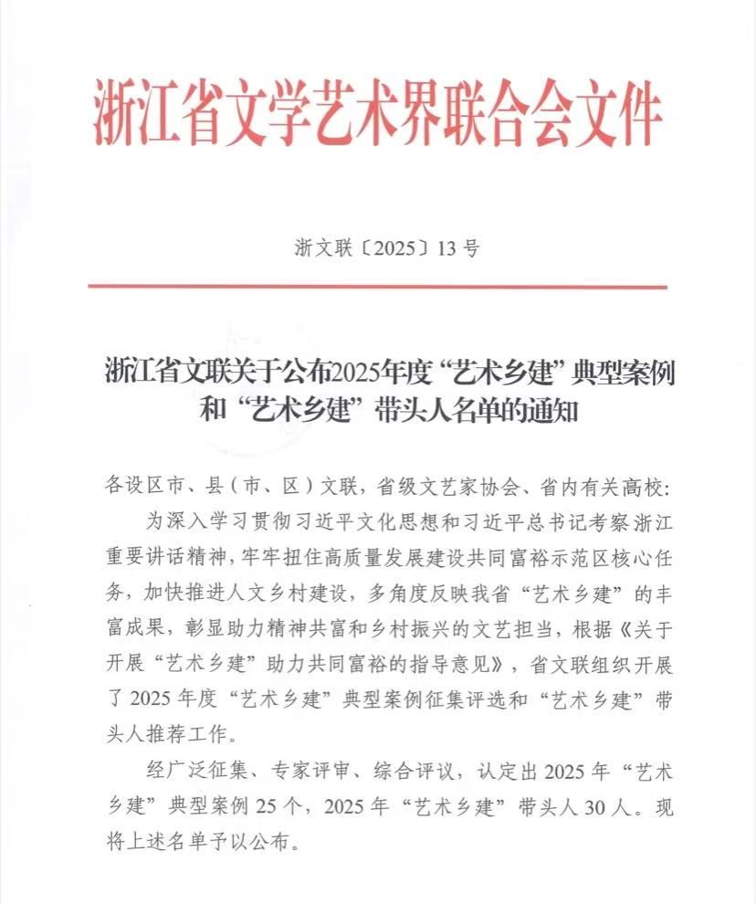 日前,浙江省文联公布了2025年度“艺术乡建”典型案例和“艺术乡建”带头人名单,永利官网艺术学院郑桂玉教授获评2025年度浙江省“艺术乡建”带头人。