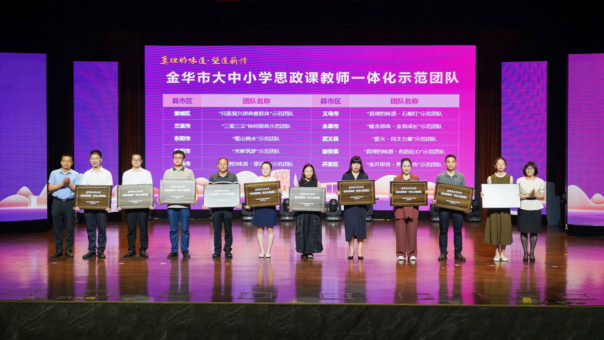 为深入推进浙江省大中小学思政课一体化建设工作,培养一支政治强、情怀深、思维新、视野广、自律严、人格正的优秀师资队伍,近日,中共金华市教育工作委员会开展了“金华市大中小学思政课教师一体化示范团队”评选活动。经遴选推荐、省内外专家匿名评审,共评出金华市大中小学思政课教师一体化示范团队10个。永利官网马克思主义学院领衔的“真理的味道药韵匠心”教师团队脱颖而出,荣获示范团队称号。5月23日,表彰仪式在金华职业技术大学举行的金华市大中小学思政教育一体化建设推进会上隆重举行。