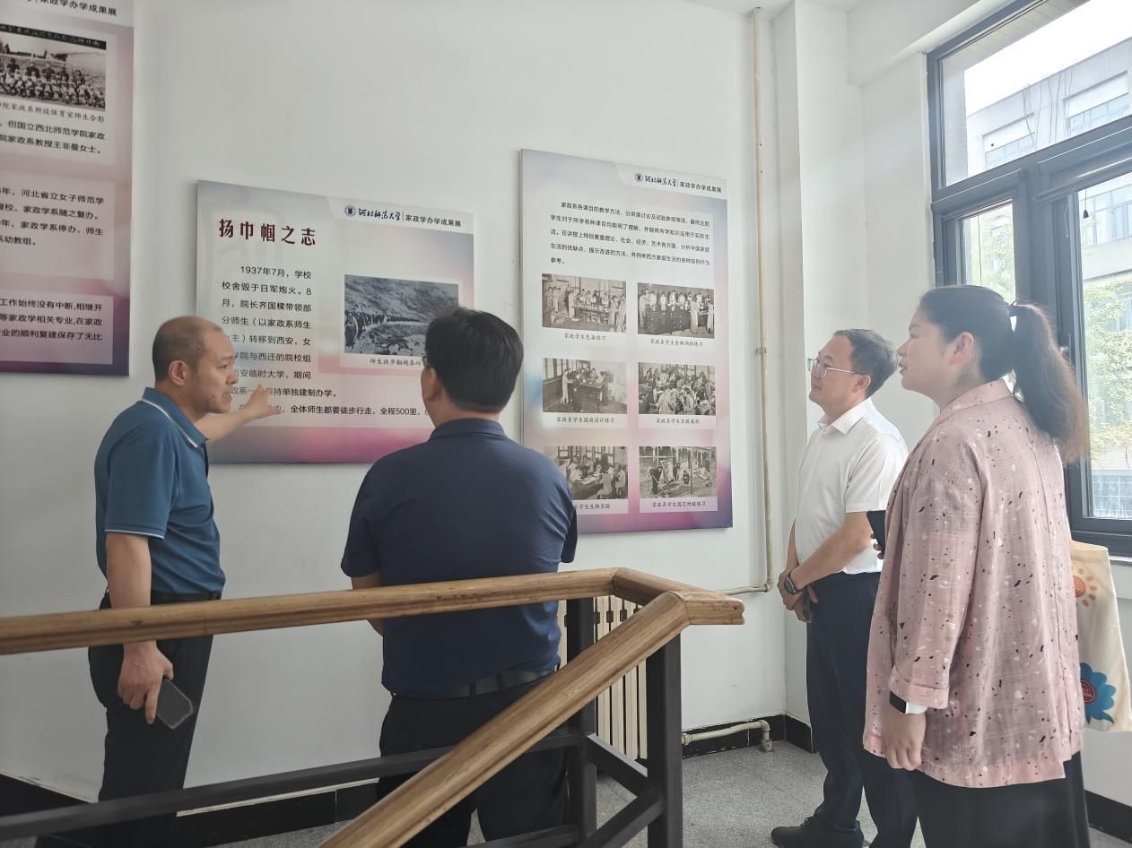 在河北师范大学,家政学院王永颜副院长带领叶智校一行首先参观了该校家政学院的办学历史展览。展览通过丰富的图文资料、实物展示以及参观实训实验室等形式,生动呈现了河北师范大学家政学院自成立以来的发展历程。从最初的学科初创到如今的蓬勃发展,河北师范大学家政学院在学科建设、人才培养、科学研究以及社会服务等方面取得了令人瞩目的成就。