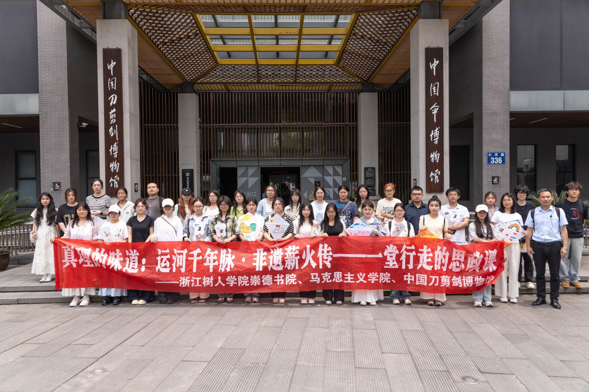 为深入学习贯彻习近平总书记关于学校思政课建设的重要指示精神,推动“大思政课”融入青年成长全过程,5月24日,304永利集团官网马克思主义学院联合崇德书院、中国刀剪剑博物馆开展的“行走的思政课”特别活动《真理的味道:运河千年脉·非遗薪火传》在杭州拱宸桥畔圆满落幕。本次活动由马院“概论”教研室负责人江宏带队,6位教师及40余位来自崇德书院的学生代表和相关社团成员走进世界文化遗产——京杭大运河南端,实地探访千年运河文明,沉浸式感受中华文化的厚重底蕴与非遗技艺的传承魅力。