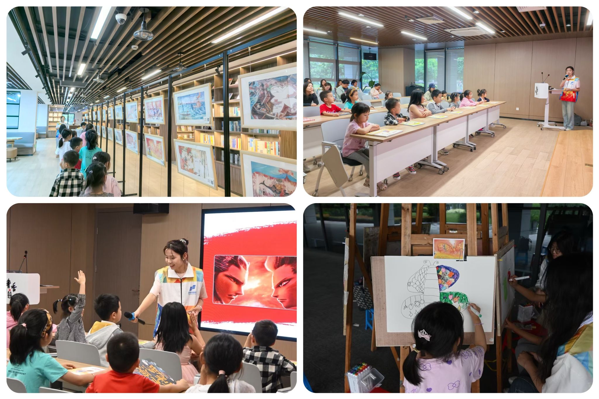 5月18日的杨汛桥校区"越湖时光"变身童趣艺术乐园。在"童笔绘越湖"活动中,20余名小朋友在大学生志愿者的带领下,开启了一场艺术发现之旅。孩子们先是参观了充满东方韵味的少儿插画展,在"找一找""说一说"等互动游戏中培养艺术感知;随后在绘本阅读区,一本本精美的图画书让孩子们爱不释手;最令人期待的是创意绘画环节,小朋友们用稚嫩的笔触描绘心中的节日景象,一幅幅充满童真的画作成为他们送给自己的最好六一礼物。