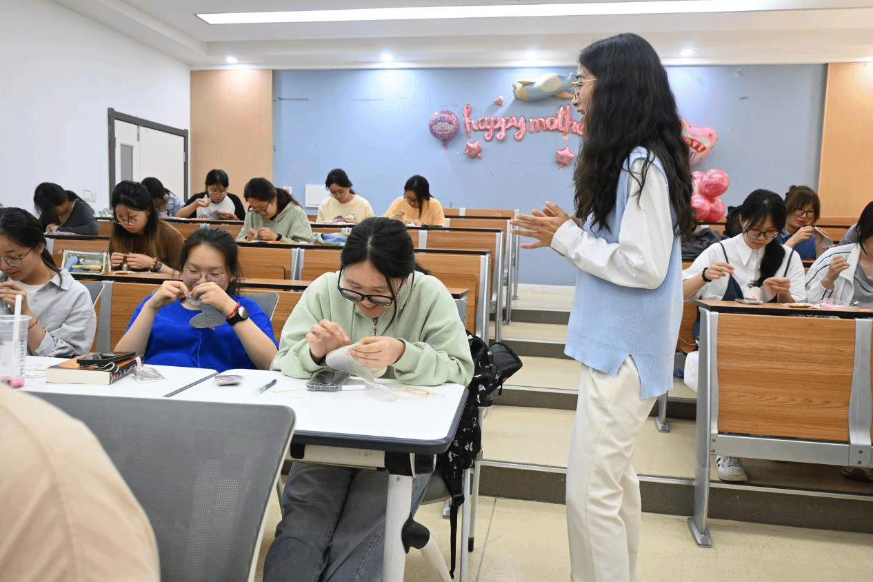 “重智启程·巧手缝温情”母亲节活动以针线为媒,将感恩教育融入传统文化实践。现场飞针走线的沉默里藏着少年未言的心事。当心理教师轻语“针脚是情绪的轨迹”,一名女生将绣着“平安”二字的香囊紧贴心口,无声诉说着对母亲的爱意。这种具象化情感表达,让43枚香囊成为焦虑情绪的安放容器,更承载着感恩教育的深层内核——通过手作完成情感的具象传递与自我疗愈,让孝亲敬老的传统美德在指尖流转中生发新意。