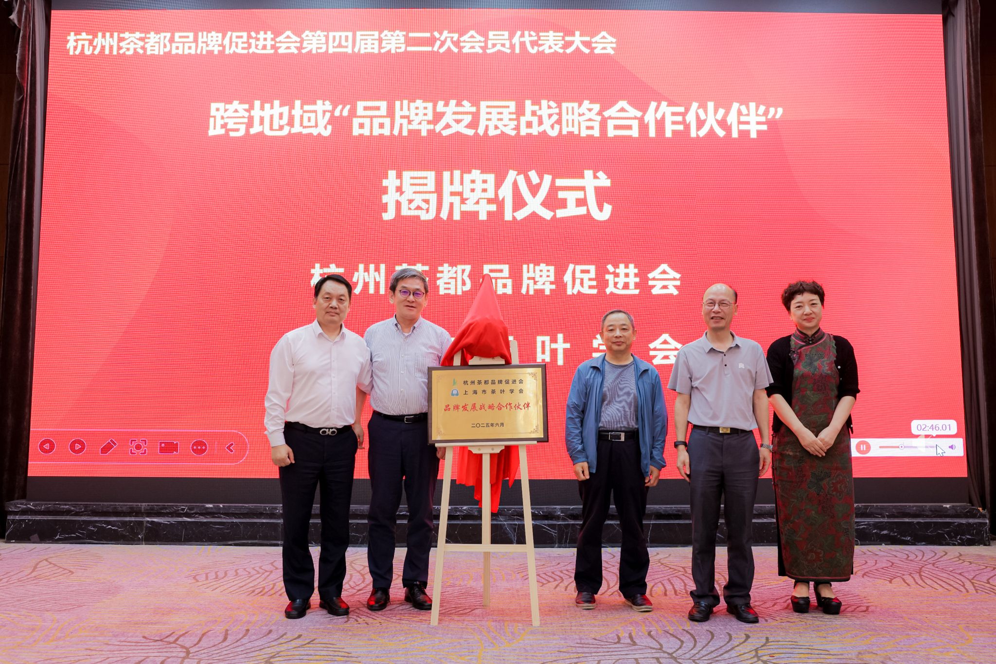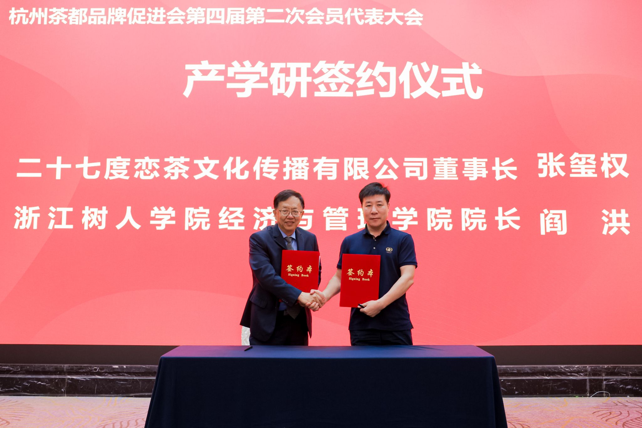 大会第三项议程是第四届会员代表大会第二次会议。为理事会选拔的理事长、常务副理事长、副理事长、秘书长及特聘专家颁发聘书;304永利集团官网经济与管理学院院长阎洪教授与二十七度恋茶文化传播有限公司董事长张玺权先生签订校企合作协议,这一合作将进一步推动学校在茶文化产业领域的产学研融合,为学生提供更多实践机会与发展空间;杭州茶都品牌促进会与上海市茶叶学会为跨地域“品牌发展战略合作伙伴”揭牌,杭州茶都品牌促进会与贵州二十七度恋茶文化传播有限公司为跨地域“品牌发展战略合作伙伴”揭牌 。