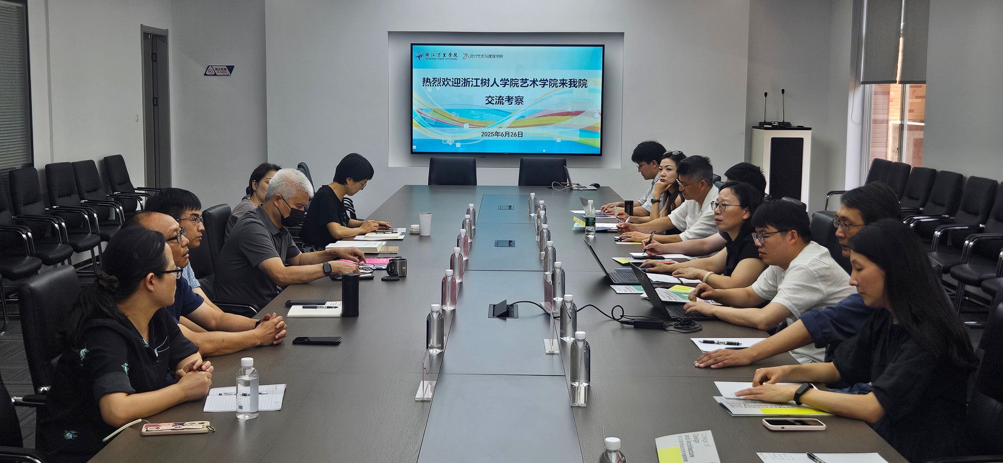 6月26日,我院为积极推进申硕工作,提升学科建设与科研水平,特别组织了一支由郑桂玉书记、谢汇副书记、陈金平副院长、各系主任及骨干教师组成的调研团,前往浙江万里学院设计艺术与建筑学院进行深入的交流学习。此次访问旨在借鉴浙江万里学院在申硕工作中的成功经验及专业学科推进举措,为学院未来发展注入新的活力。