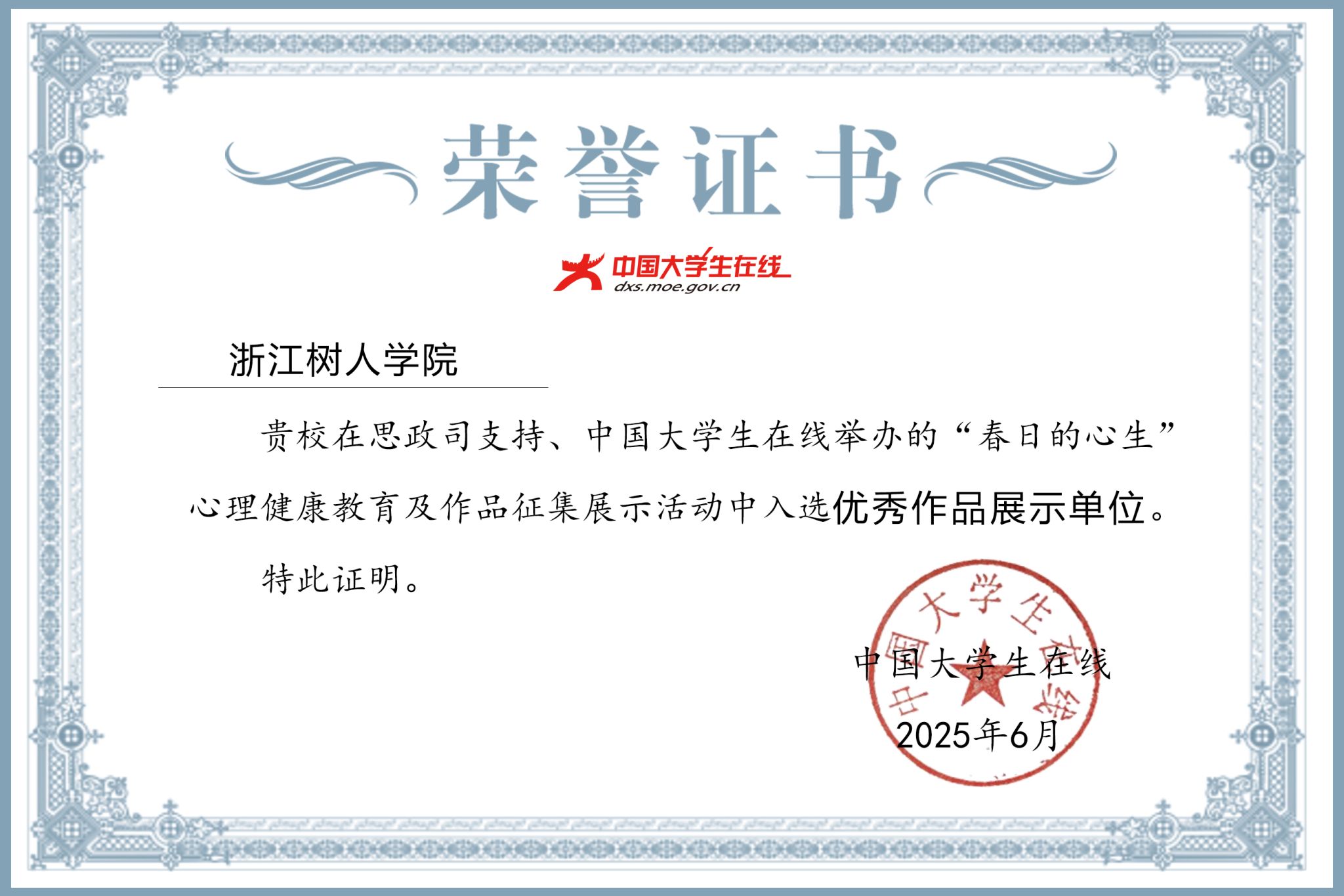 近日,由教育部思想政治工作司支持、教育部中国大学生在线主办的“春日的心生”心理健康教育暨作品征集展示活动评选结果揭晓。经学校党委宣传部精心组织策划、积极申报并有效整合校内外资源,永利官网成功入选“优秀作品展示单位”,4件优秀作品入选中国大学生在线平台“高校心理资讯”专栏进行集中展示,充分展现了永利官网心理健康教育工作的成效与特色。