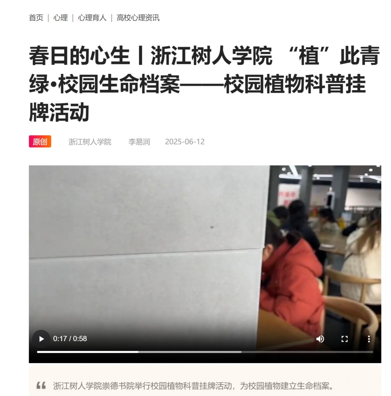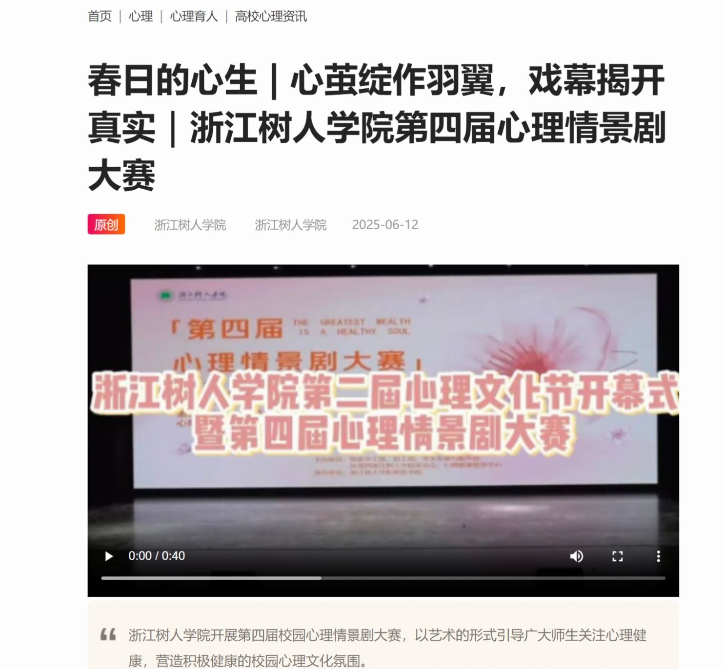 本次活动以“感悟生命美好,培育积极心理品质”为主题,旨在推动高校学生心理健康教育创新发展,吸引了全国众多高校参与。活动启动以来,党委宣传部高度重视,将其作为展示永利官网心理健康教育成果和校园文化的重要窗口,迅速牵头组织落实,积极协调学校心理中心及各书院,围绕活动主题,深入报道了“春日植物手作”、“心理情景剧”、“校园植物科普挂牌”等系列特色鲜明、富有创意的心理健康教育活动,全程跟进活动进展,深度挖掘亮点,精心组织稿件撰写与素材整理,并负责向活动主办方报送高质量的成果材料。
