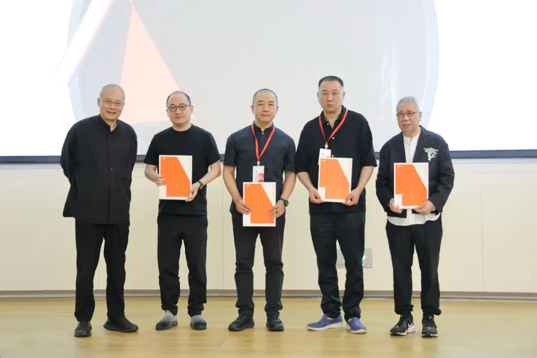 靳埭强先生向中国国际设计博物馆捐赠“2008北京奥运系列海报”五张,赵燕教授、韩绪教授、陈正达教授也同时捐赠“1999年靳埭强设计展纪念文献”,由许江颁发捐赠证书。