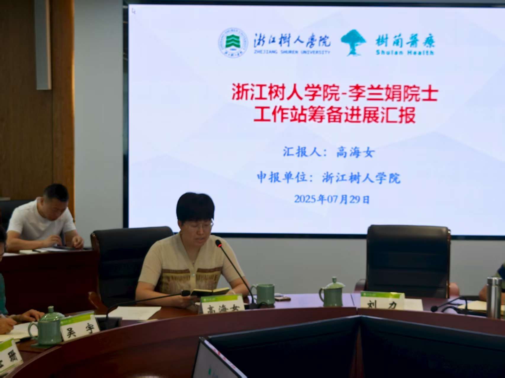 7月29日,杭州市院士专家中心主任祝源源和拱墅区科协主席向红一行来校指导院士工作站筹建准备工作。副校长叶时平、校学术委员会常务副主任陈智出席,学科处处长史丽云、科研处处长陆胤、全省人工器官与计算医学重点实验室主任高海女、科研处副处长邱宁、刘力、转化医学研究院副院长寿鑫参加。会议由科研处处长陆胤主持。