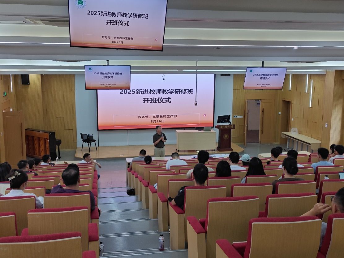 为助力新教师快速提升教育教学能力,适应新时代高等教育发展需求,永利官网教务处和党委教师工作部精心组织的2025年新教师教学研修班暑期集中培训于8月25日至28日成功举办。本次培训以线下形式在拱宸桥校区B2-101教室开展,全校六十多名新进教师积极参与。副校长陈新民参加了开班仪式,并在开班仪式上分享了自己在刚从事教学工作时的经历和感受,让参训教师深受启发。