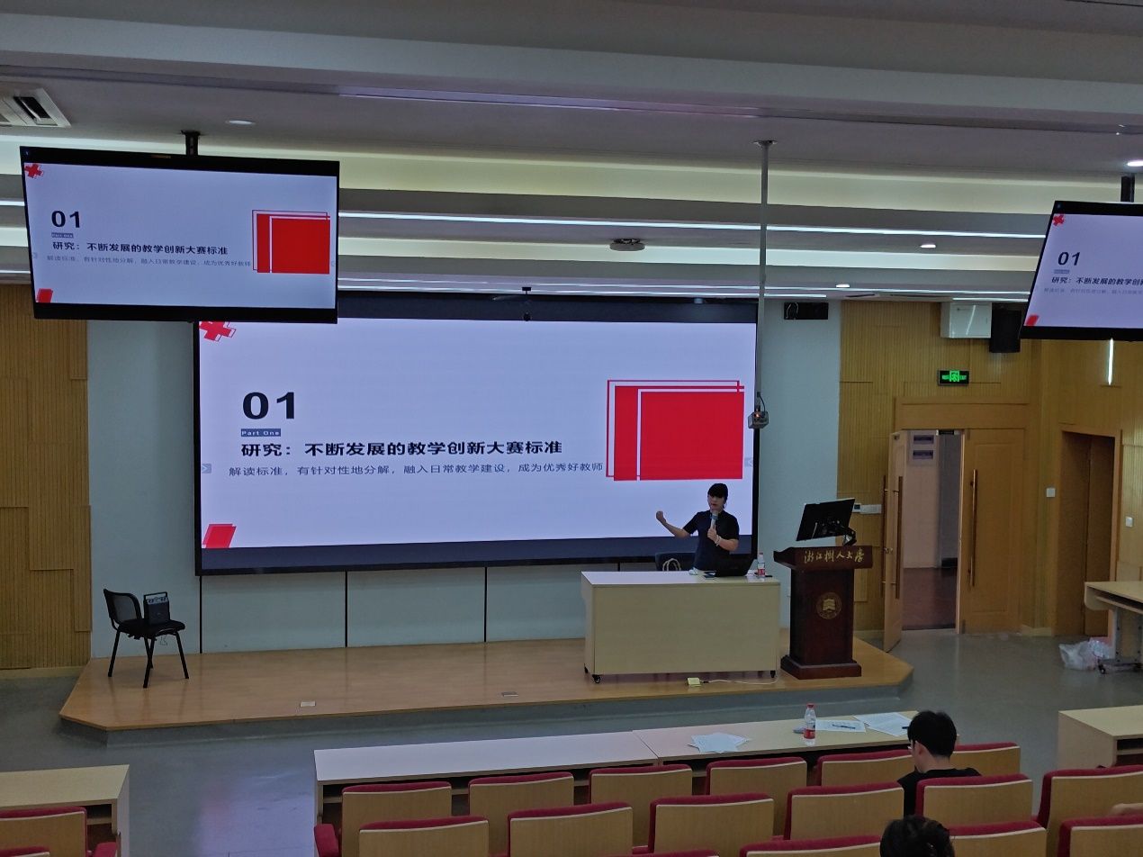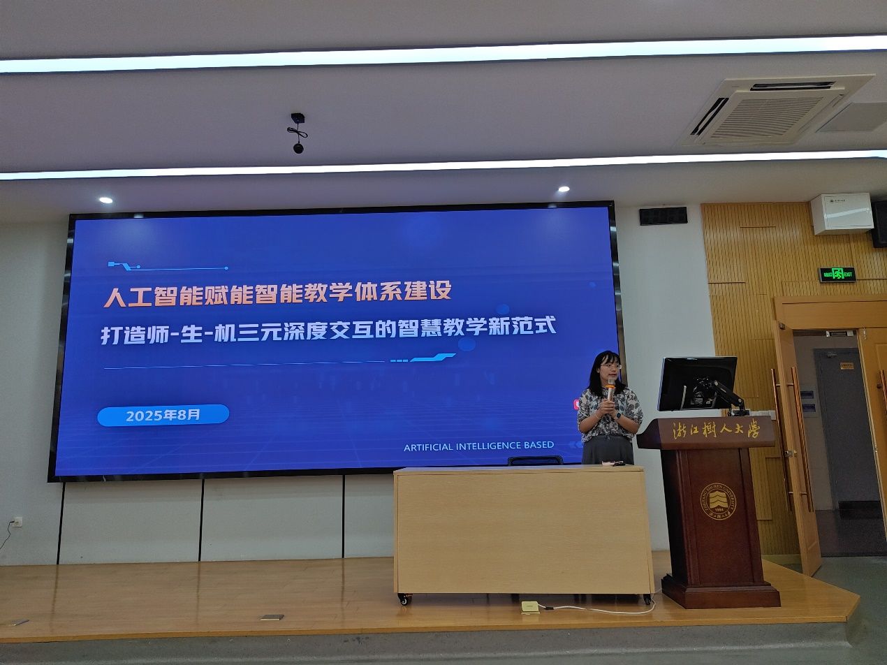 在四天的集中研修中,培训内容紧扣当前教育前沿与教学实际,涵盖生成式人工智能赋能教学创新、大学生心理健康教育、课程思政建设、教学成果积累以及数字化教学能力提升等多个核心主题。来自浙江工商大学、浙江理工大学、浙江传媒学院及企业界的多位专家应邀担任主讲,为新教师带来了一系列内容丰富、实用性强的专题讲座。
