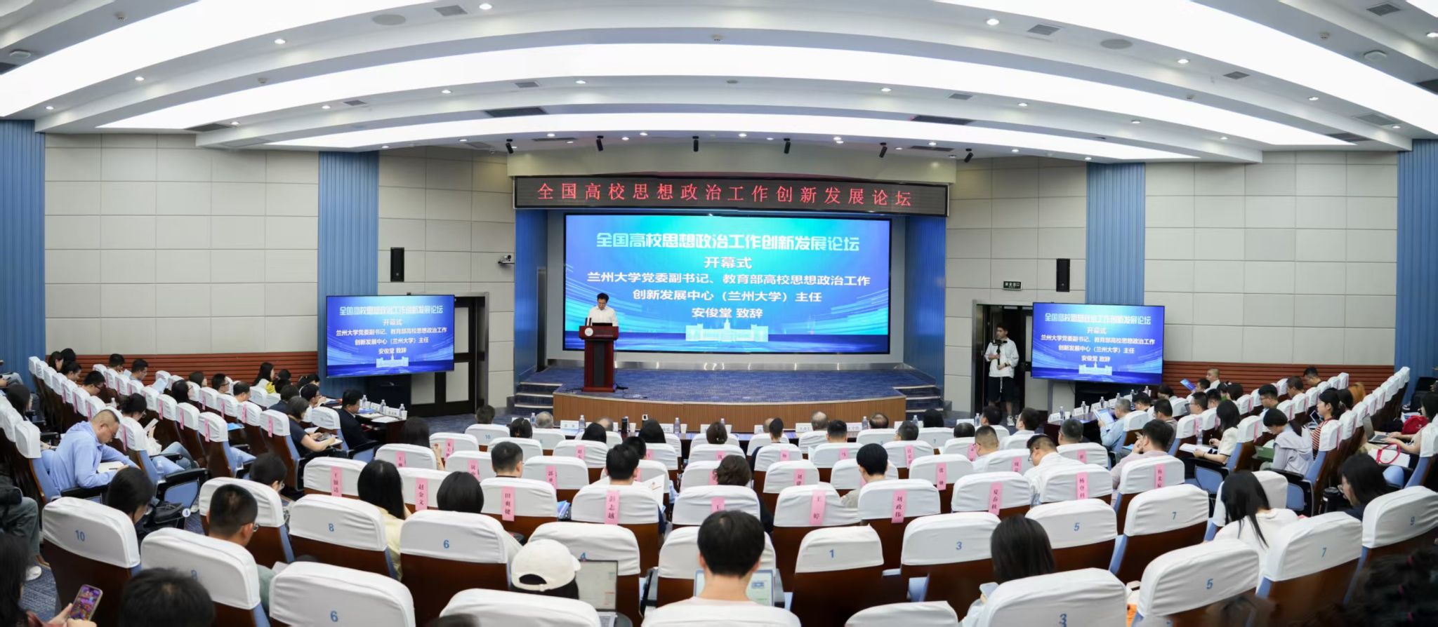 论坛期间,中国高等教育学会全国高校思想政治教育研究分会学术委员会主任、北京科技大学思想政治工作研究院院长冯刚教授,西北师范大学校长王占仁教授,武汉大学原党委副书记、思想政治教育研究院院长、新疆大学骆郁廷教授,北京师范大学马克思主义学院王树荫教授,兰州大学新时代思想政治教育工作研究院院长王学俭教授等先后作主旨报告,分别围绕“提升新时代思政工作引领力”“深化立德树人工程理论与实践研究”“推进大中小学思政教育一体化建设”等关键议题展开深度研讨,提出一系列具有前瞻性与可操作性的观点建议,为高校思政工作高质量发展提供理论指引与实践参考。专家主题报告会上,来自清华大学、中国人民大学、北京师范大学、上海交通大学、四川大学、东北师范大学、兰州大学等10所高校的专家学者分享了新时代高校思政工作中的创新探索与典型案例,为与会者提供了丰富的实践样本与经验借鉴。