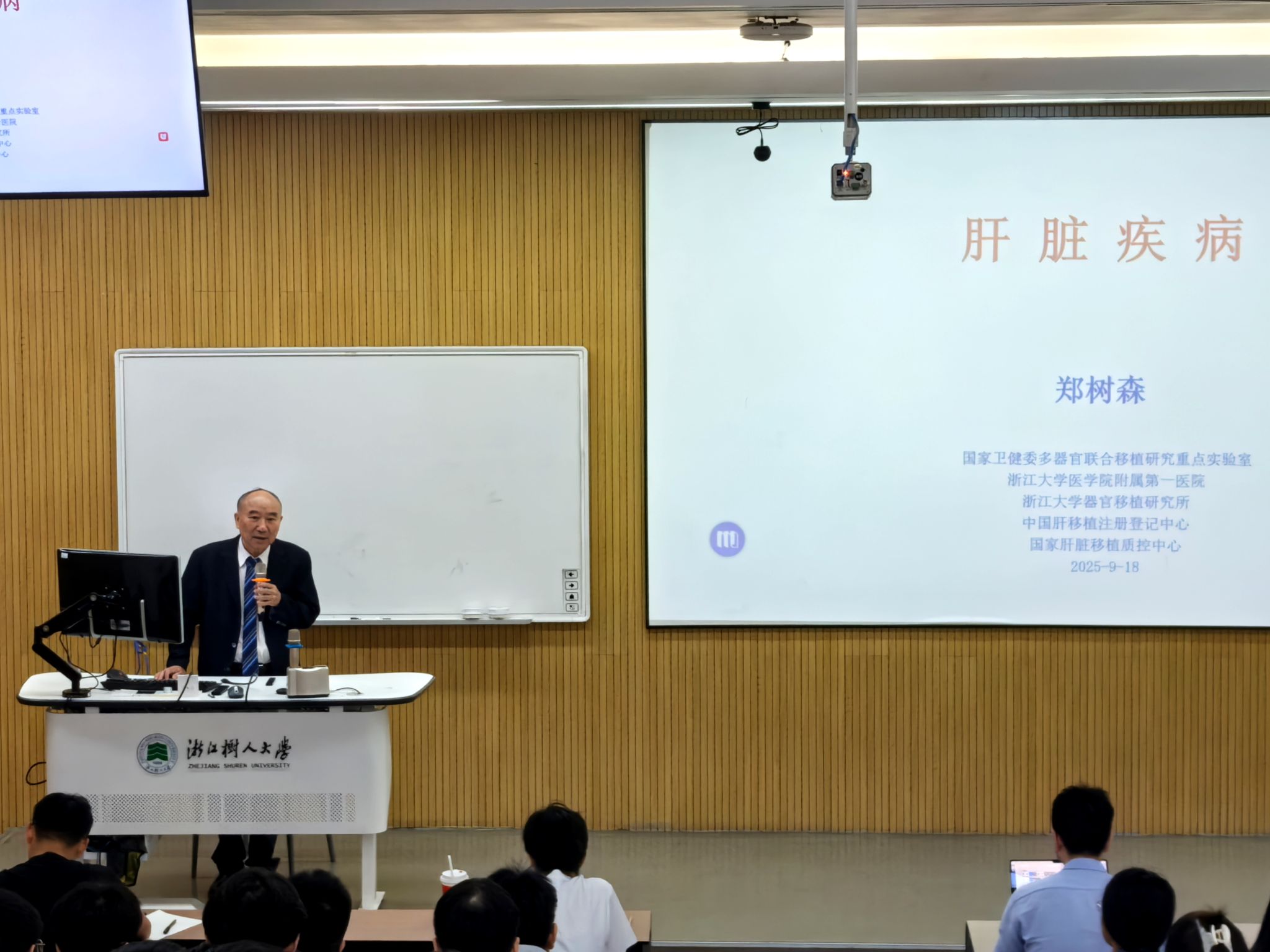 9月18日上午,中国工程院院士、著名肝胆胰外科专家郑树森教授再次走上树兰国际医学院的讲台,为2022级临床医学专业本科生讲授《外科学》第一课。这已是郑树森院士连续第四年坚持亲自为本科生上这门课的开篇。