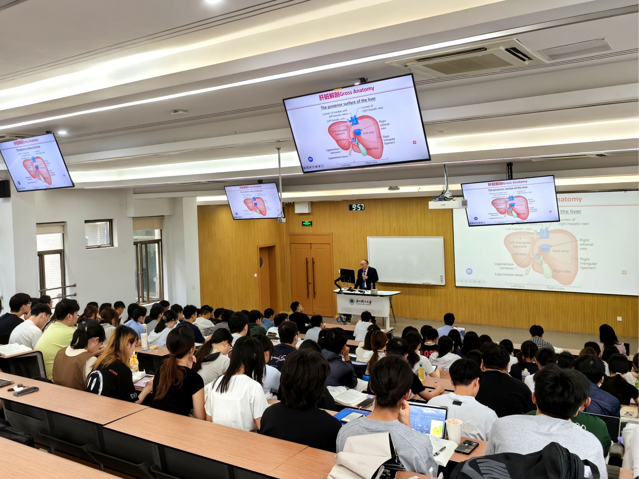 学院始终坚持教授100%进课堂为本科生授课,树兰国际医学院将郑院士的《外科学》第一课作为落实“三全育人”理念的重要举措。郑院士在讲授理论知识的同时,强调临床学生应“早临床、深临床、反复临床”,《外科学》正是学院建设高质量专业、课程和师资的示范。