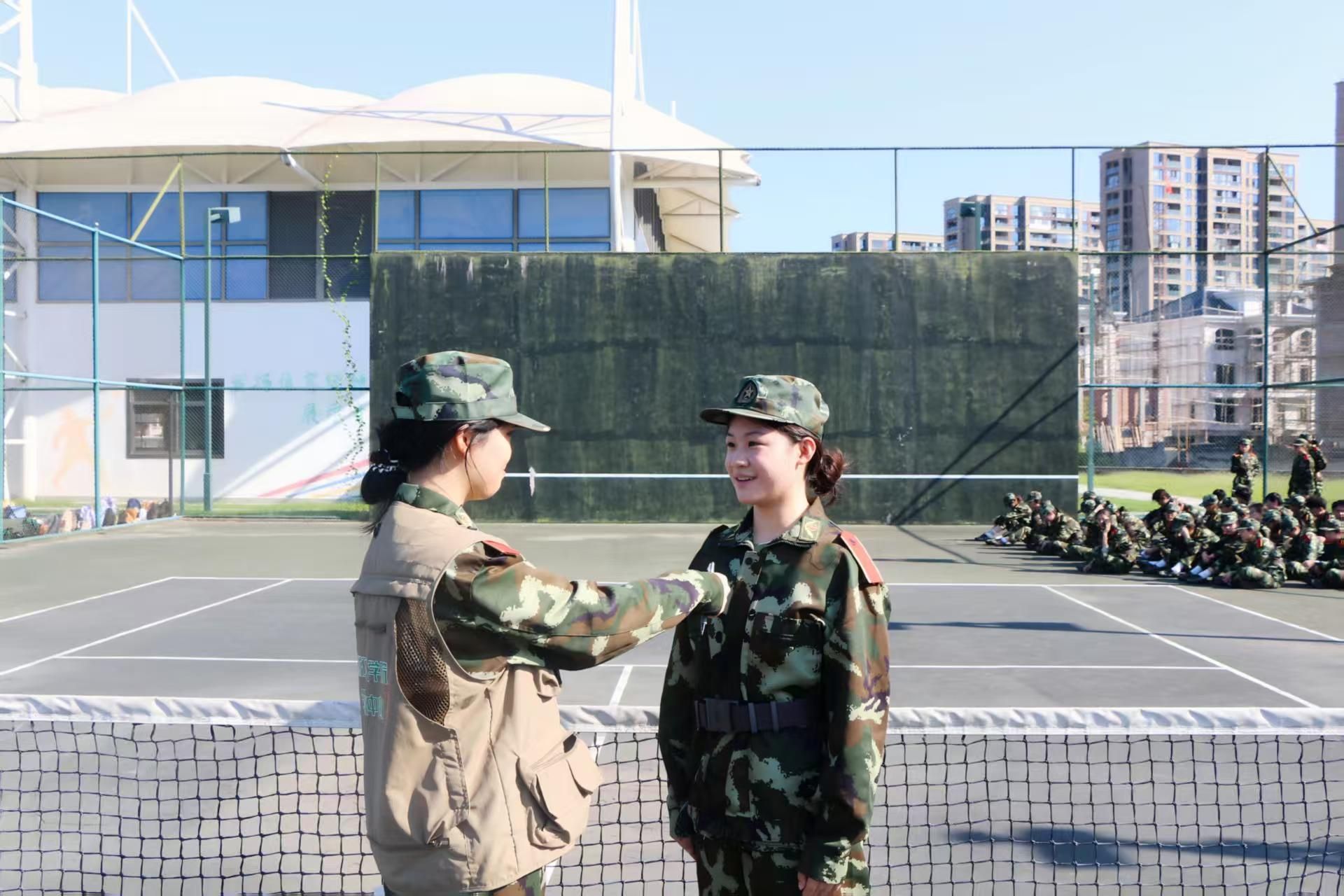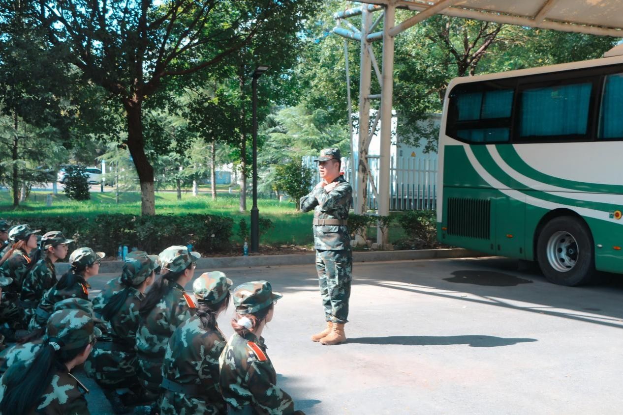 新生军训中也不乏新教官的身影。七营十三连的郑佳和教官就是其中一位。高二时她观看了《士兵突击》,许三多“不抛弃、不放弃”的执着精神深深触动了她,她也希望成为像许三多那样坚毅、有担当的人。完成从军人到教官的身份转变后,她更加体会到军人肩负着保卫国家的使命,而作为教官,更要把军人的作风和优良品质传递给学生,多一份责任与担当。在经历第一天军训后,她表示:“这批新生训练认真、有冲劲,比我当新兵时更有活力,想法也更丰富,但在纪律意识上还需加强。我相信他们会做得更好,也希望他们真正理解什么是令行禁止,学会坚韧不拔,遇到困难绝不轻言退缩。”