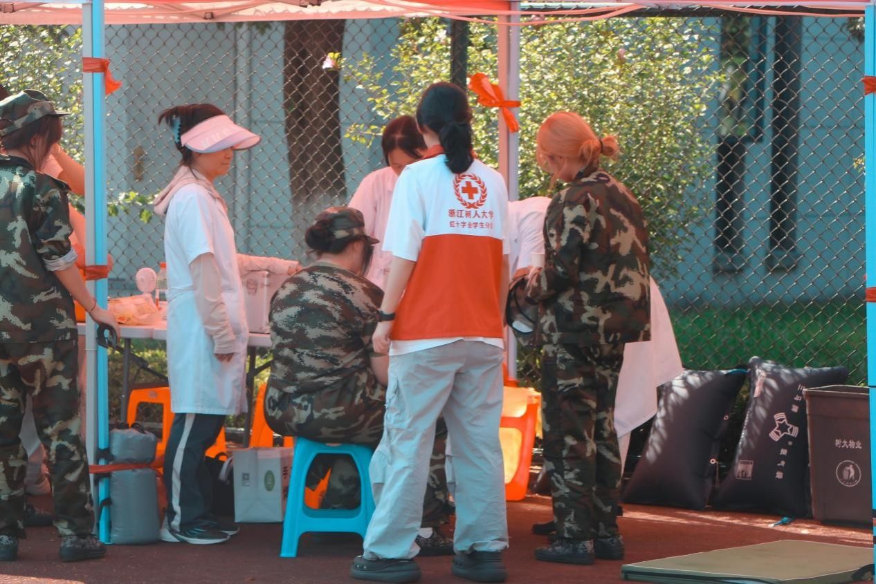 老师们也在默默守护,成为学生坚实的后盾。毫末书院的徐凯澳老师分享道:“军训第一天早晨,毫末书院常务副院长刘永波、直属党支部书记陈吉在训练场视察时遇到了晕倒的同学,立即将他抱起送往医疗室进行治疗。”迷彩服之下,这份新的温情守护,不仅来自后勤与医疗部门,也来自每一位老师、班助。他们是军训幕后的“守护者”,在忙碌中用细致与坚守,筑牢了这场军训的“新保障防线”。