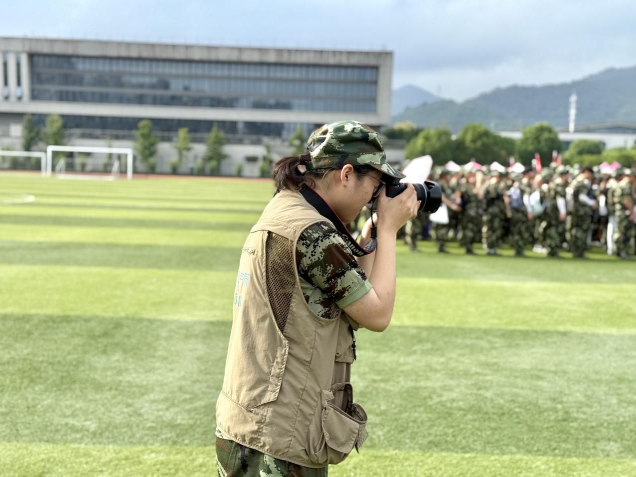 每天清晨七点,当同学们还在整理内务时,微博部的何蕊已扛着相机赶往器材室,仔细检查电池、清空存储卡——这是她雷打不动的“晨训”。最让她印象深刻的是,有时为了捕捉一个理想的镜头,她需要站在原地反复等待,直到画面中的动作与心中的构想完美重合。“好在同学和教官都特别配合。”她微笑着说,“虽然耗时,但看到自己的照片被认可、采用,我觉得非常值得。”