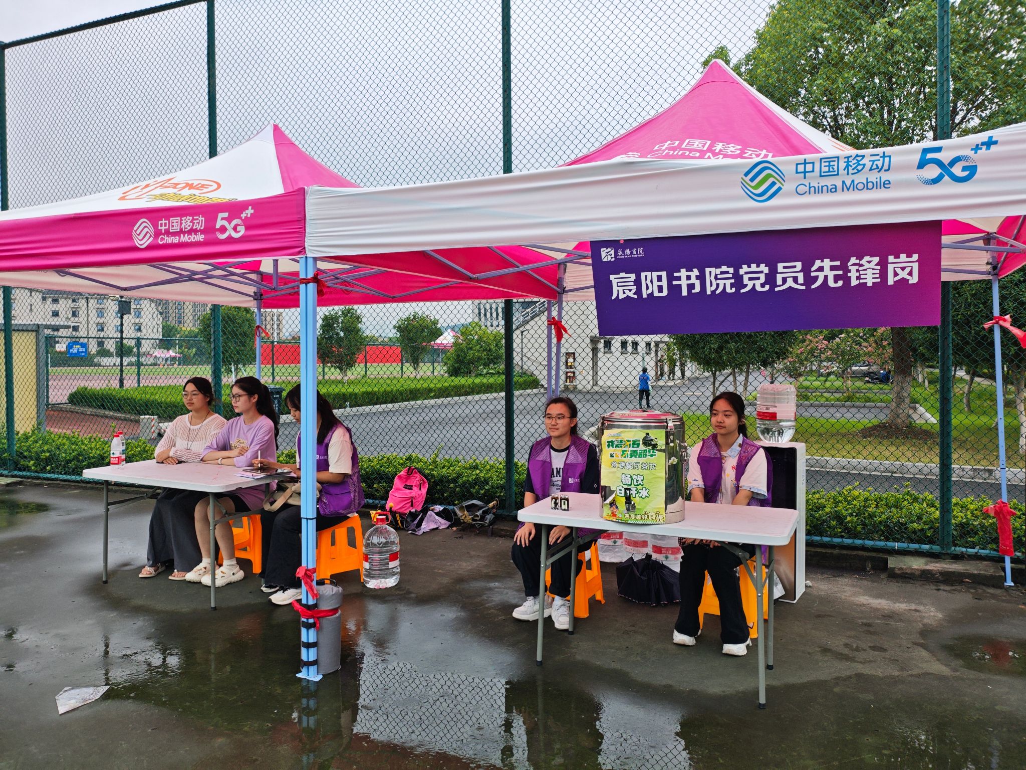 在这片迷彩色的海洋中,有一抹紫色身影始终在跃动——宸阳书院党员先锋岗的志愿者们。他们身着紫马甲,穿梭于训练场的各个角落,构成了一道温暖而坚实的风景线。烈日下,他们是及时的“补给站”,将一瓶瓶清水递到汗流浃背的同学手中;疲惫时,他们是贴心的“守护者”,搀扶身体不适的学子前往休息区。他们的身影与挺拔的军姿交相辉映,用行动诠释着“守护”的含义,让党徽在服务一线闪闪发光。