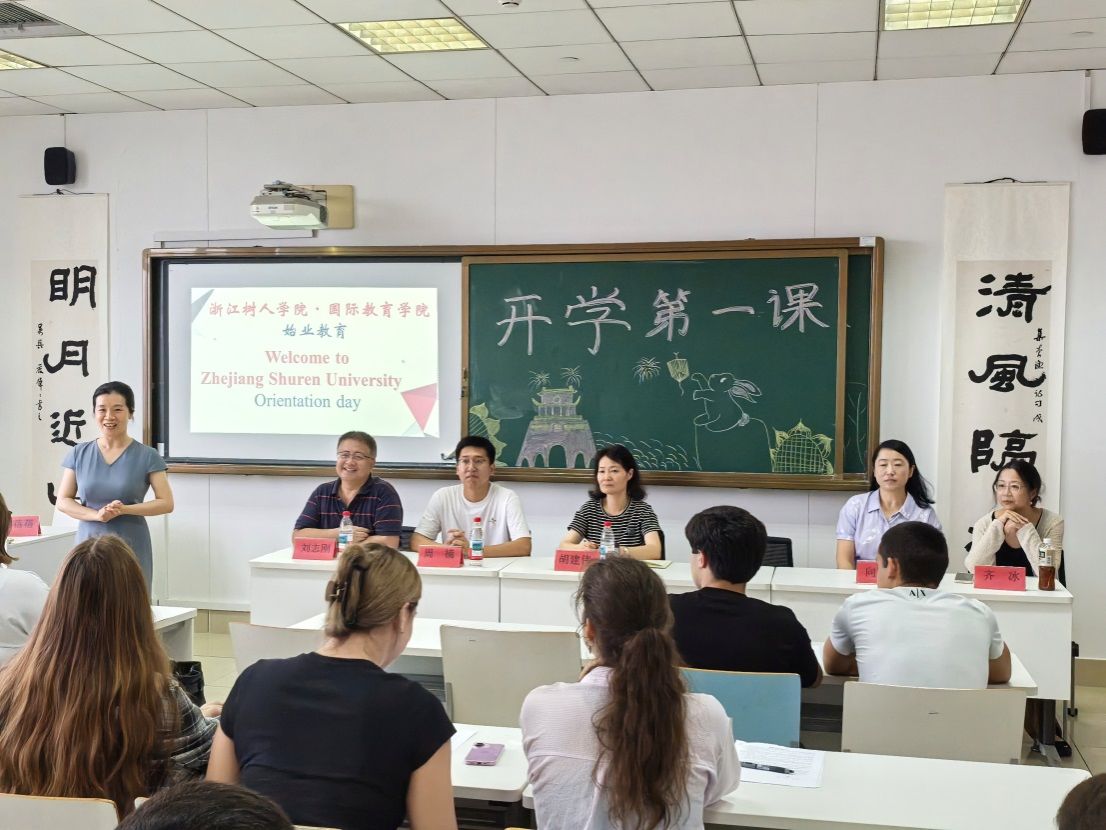 胡建伟院长在院长致辞中对全体留学生的到来表示了热烈欢迎与诚挚祝贺。她指出,选择树人是留学生们开启全球视野、拥抱未来的重要一步。她深情回顾了树人从创立至今栉风沐雨的发展历程,特别介绍了学校在国际化教育方面取得的成就与长远规划,强调学校为留学生提供了全面而优质的学习资源与生活支持。面对台下来自世界各地的新面孔,胡院长给予了殷切鼓励。她希望留学生们不仅能成为课堂上的好学生,更能成为生活里的“中国通”。她鼓励大家主动拥抱中国文化,勇敢地使用中文进行交流,她强调“只要付出努力,就一定会有收获。学校的每一位老师都将竭尽全力帮助大家学好中文,适应这里的生活”。